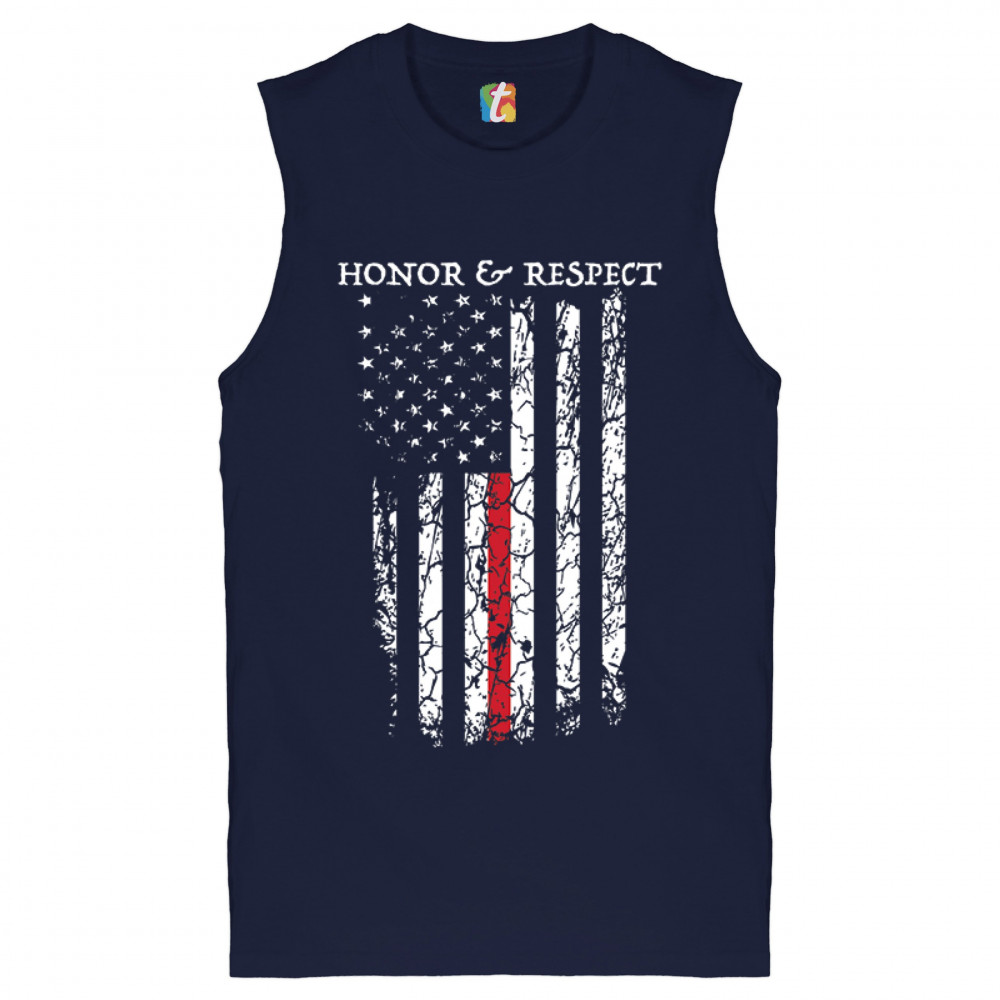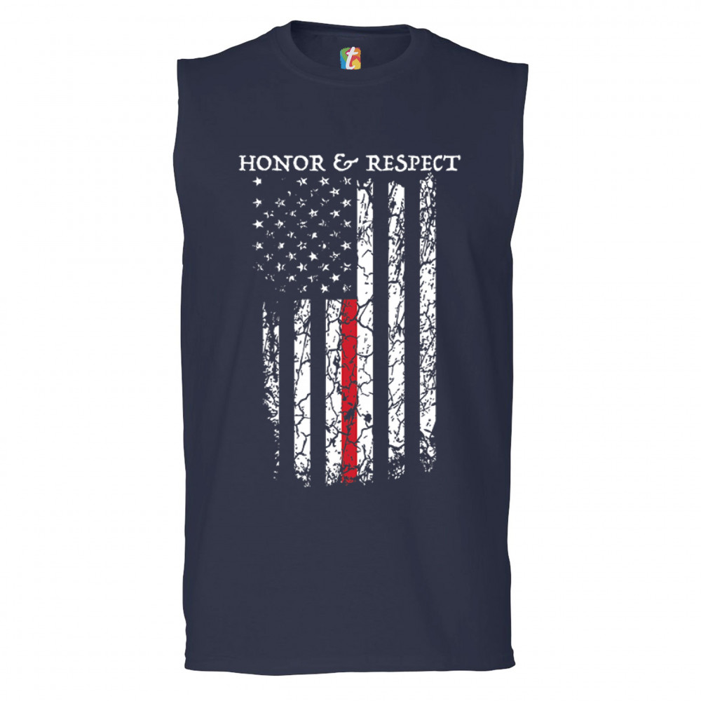 HONOR & RESPECT THIN RED LINE muscle shirt firefighter american flag men's navy blue
