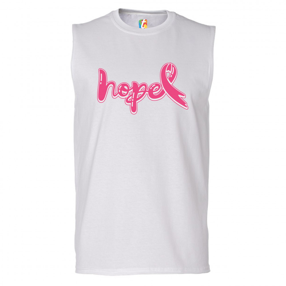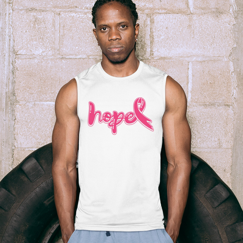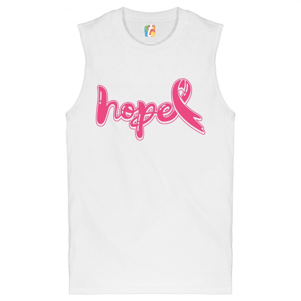 HOPE PINK RIBBON muscle shirt breast cancer awareness month men's white