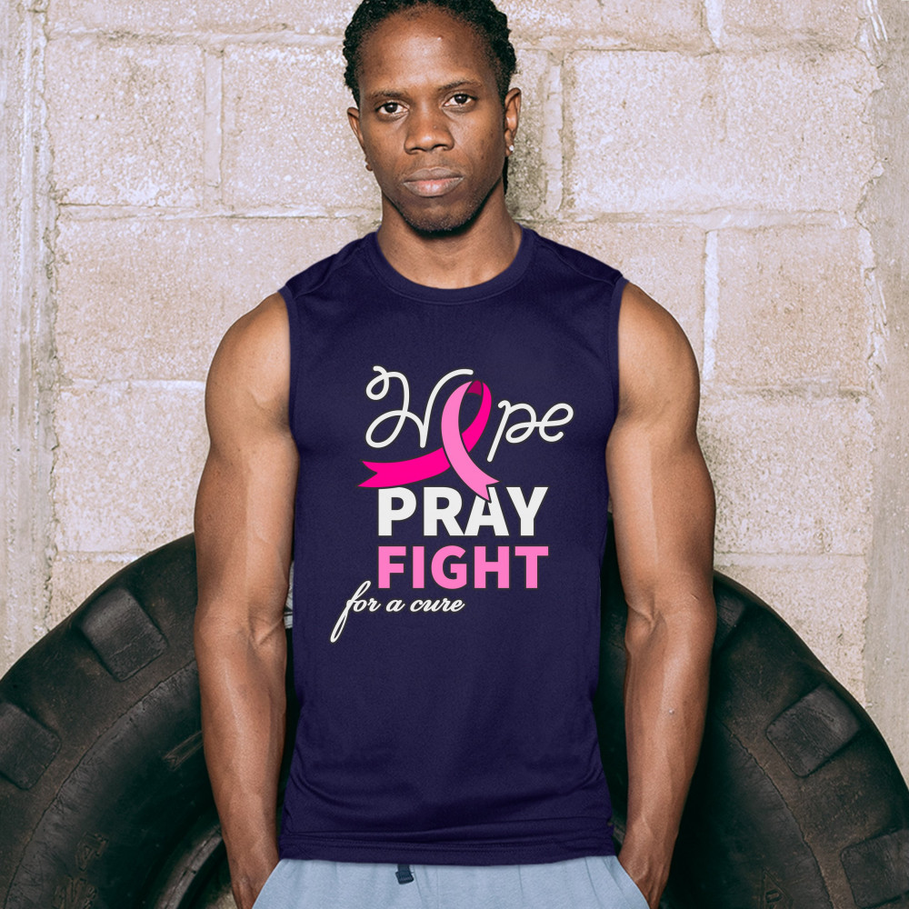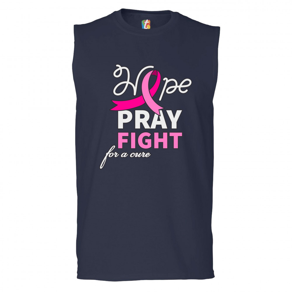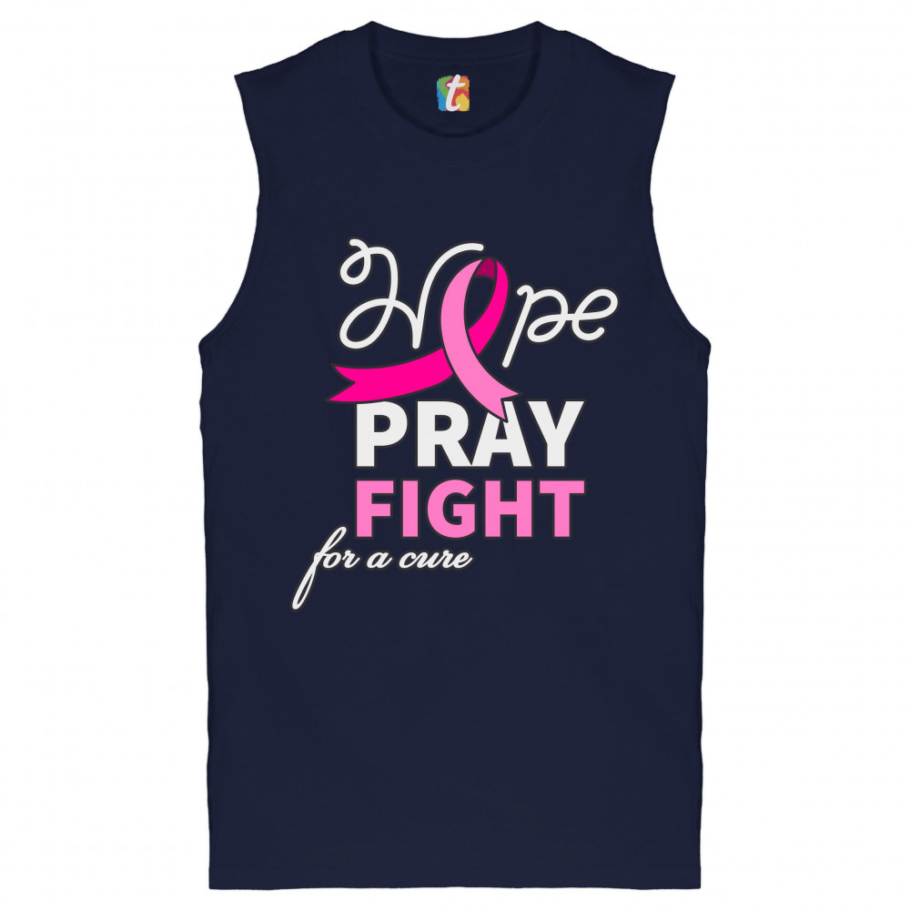 HOPE PRAY FIGHT FOR A CURE muscle shirt cancer awareness pink ribbon men's navy blue