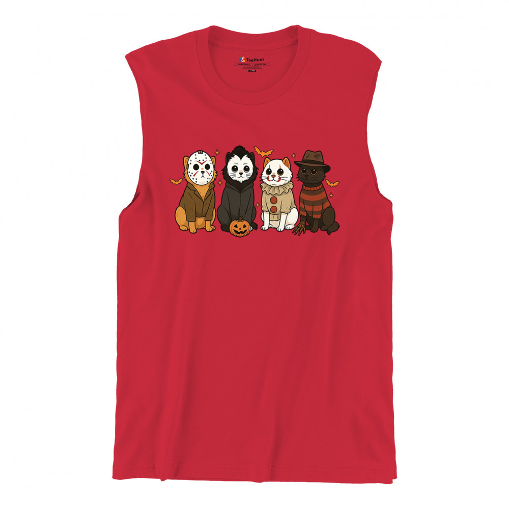 Horror Cats Halloween design with spooky costumes, Jack o Lantern details, and Haunted House vibes. Perfect October 31 outfit for cat lovers.