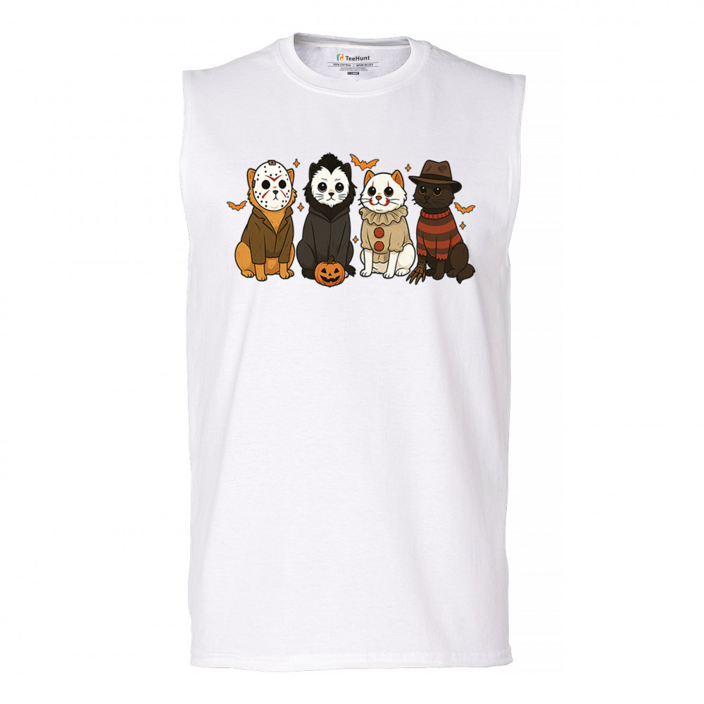 Horror Cats Halloween design with spooky costumes, Jack o Lantern details, and Haunted House vibes. Perfect October 31 outfit for cat lovers.