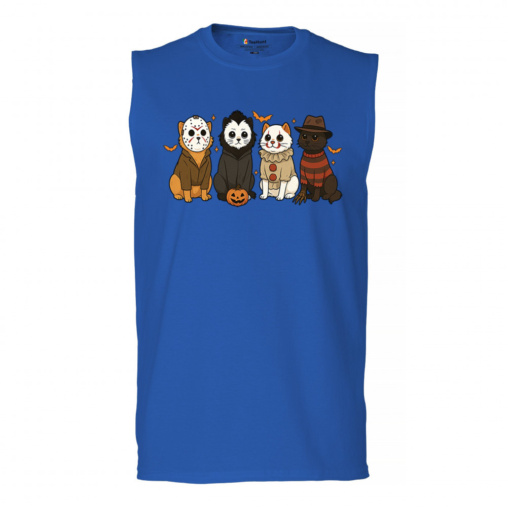 Horror Cats Halloween design with spooky costumes, Jack o Lantern details, and Haunted House vibes. Perfect October 31 outfit for cat lovers.