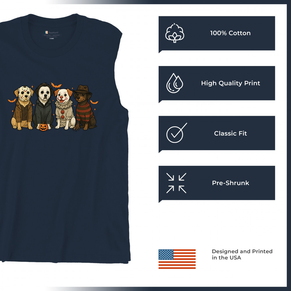 Celebrate Halloween with the Horror Dogs design featuring pups in creepy costumes inspired by spooky icons. A perfect pick for October 31 haunted house visits, autumn nights, or parties full of Halloween vibes. Whether you love dogs, witches, or pumpkin head fun, this festive design makes a playful addition to the spooky season.