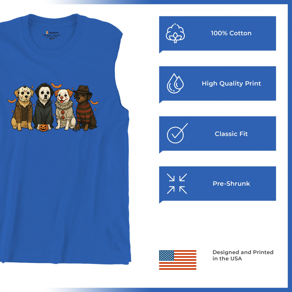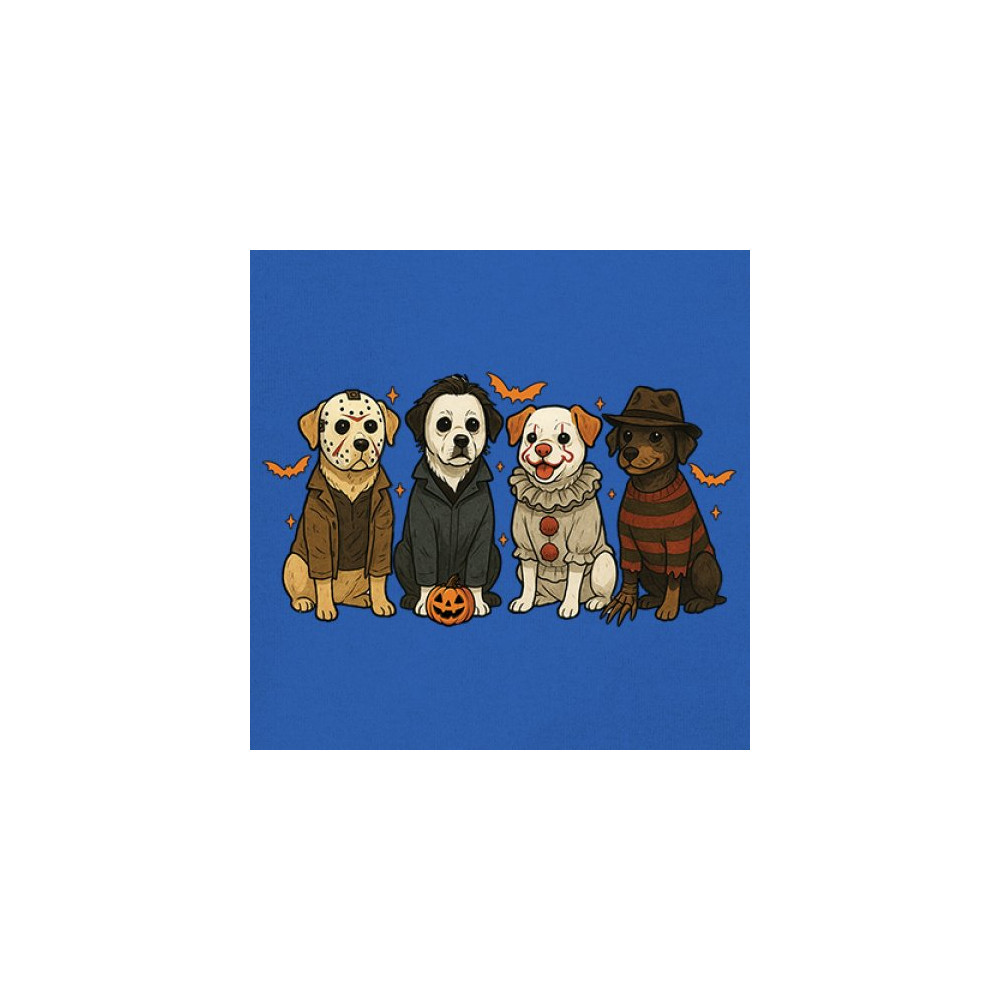 Celebrate Halloween with the Horror Dogs design featuring pups in creepy costumes inspired by spooky icons. A perfect pick for October 31 haunted house visits, autumn nights, or parties full of Halloween vibes. Whether you love dogs, witches, or pumpkin head fun, this festive design makes a playful addition to the spooky season.