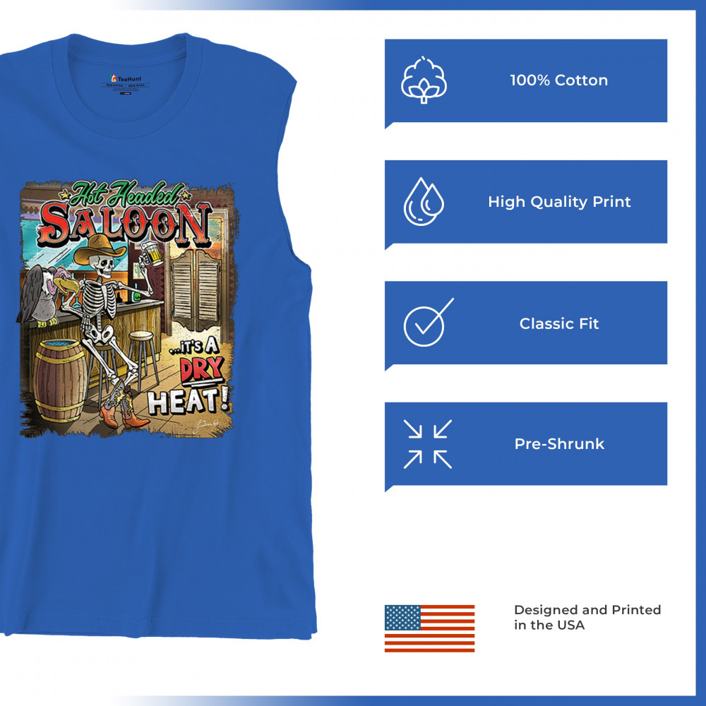 Raise a glass to style with our 'Hot Headed Saloon' t-shirt! Featuring a skeletal mixologist in a desert tavern, this tee blends humor with high-stakes western drama. Crafted for those who take their style like their whiskey – strong and full of character – it's more than just apparel; it's a wearable tale of the wild, wild west. Add this conversation piece to your collection and tip your hat to a bygone era with a laugh.