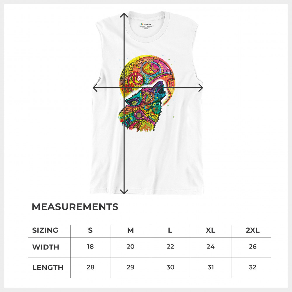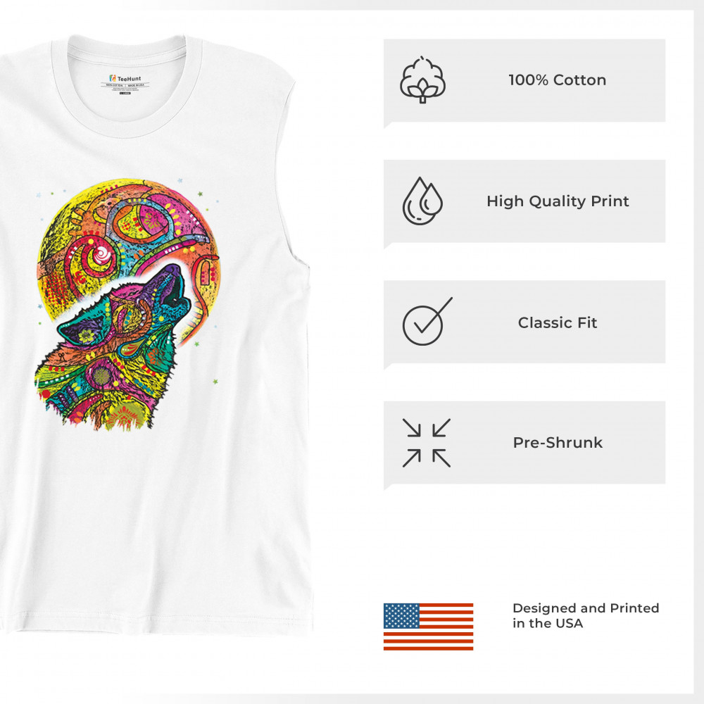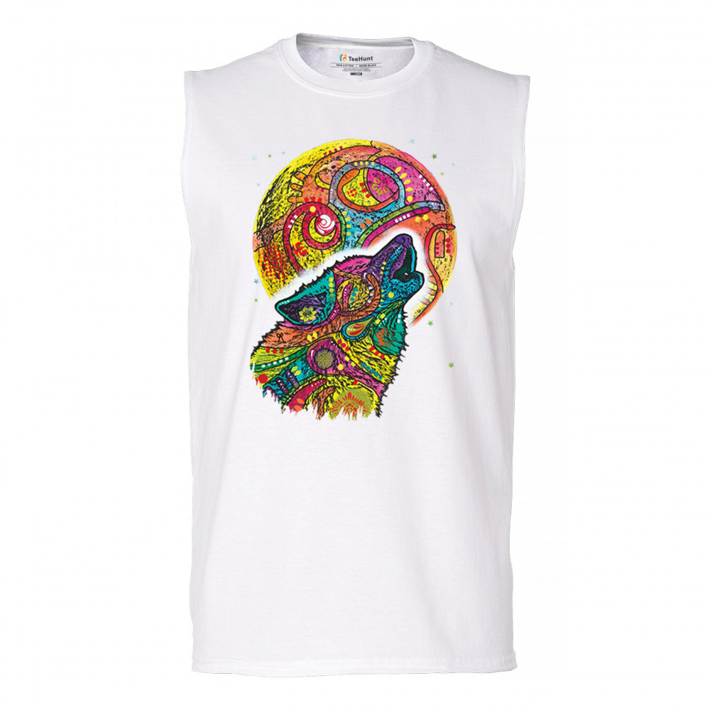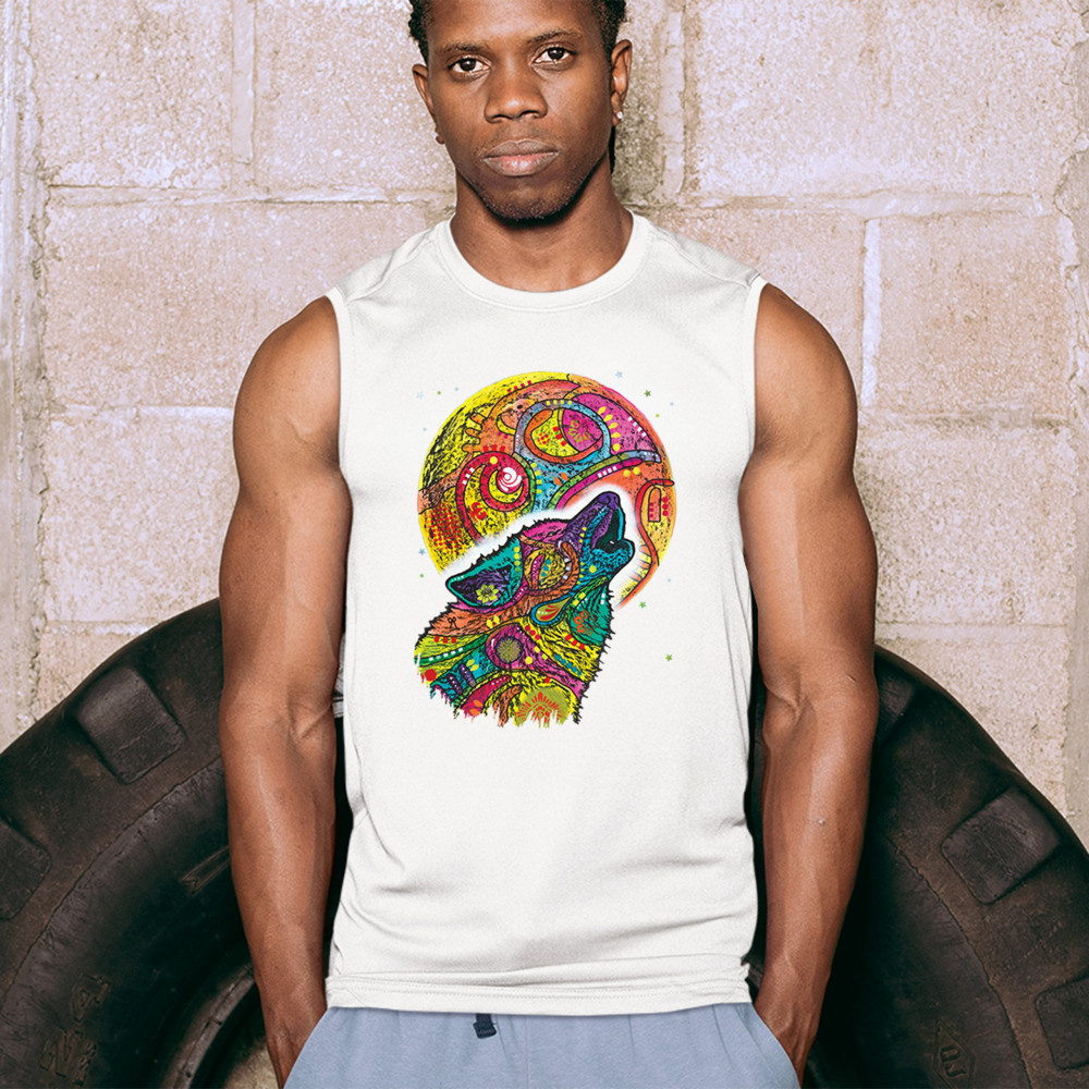 HOWLING WOLF AND MOON muscle shirt dean russo colorful wild life men's white