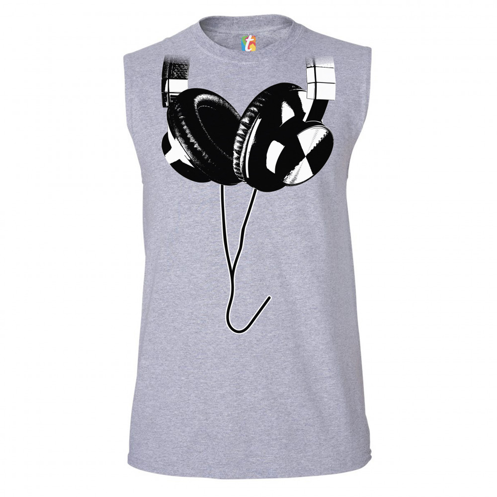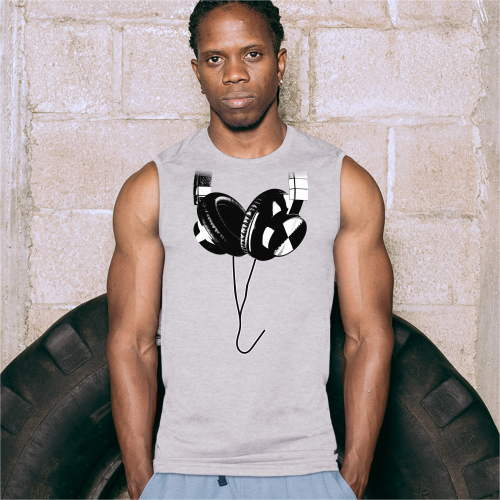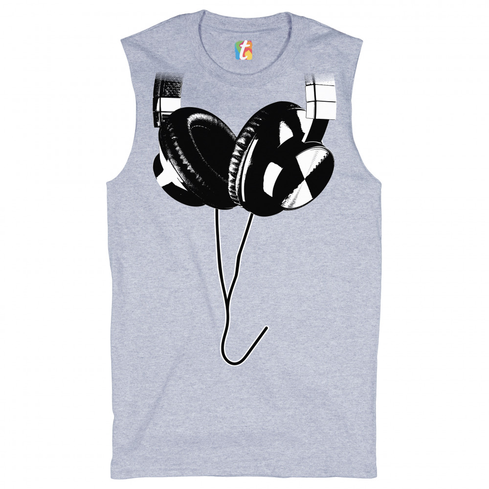 HUGE HANGING HEADPHONES muscle shirt dj music men's gray