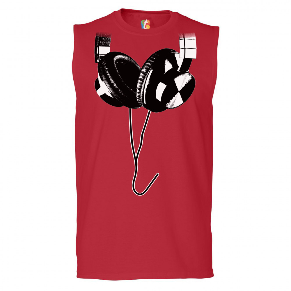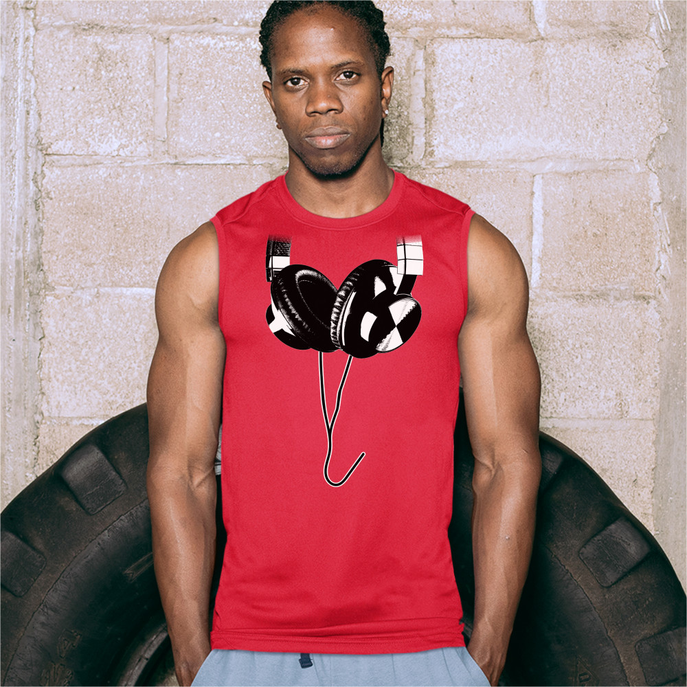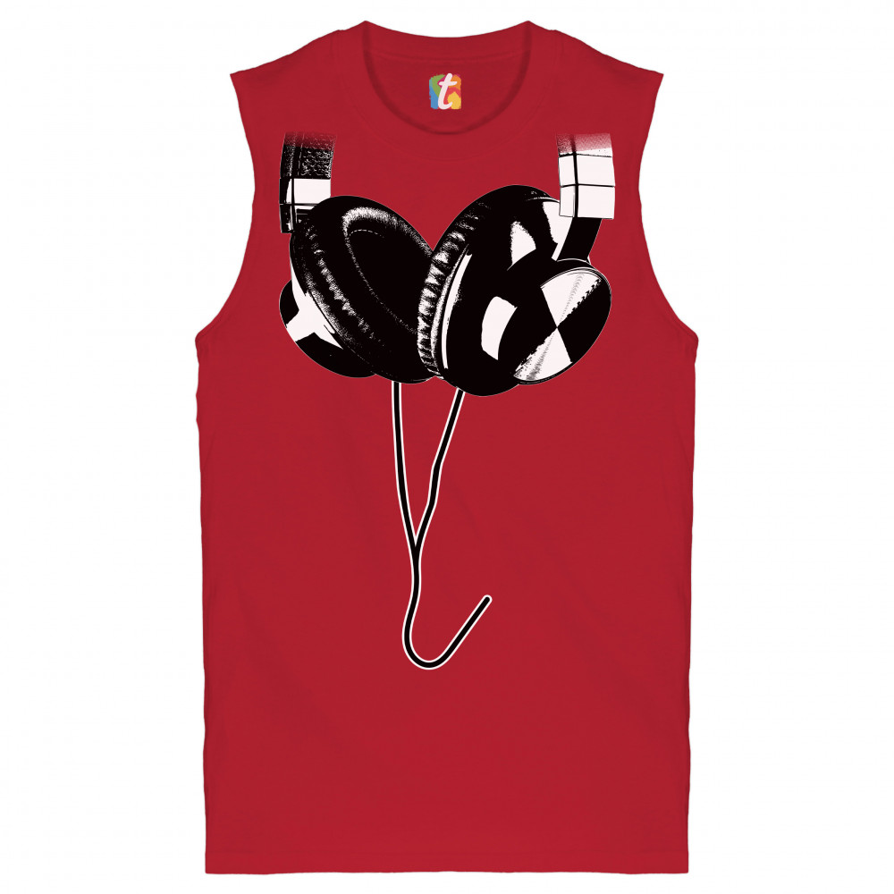 HUGE HANGING HEADPHONES muscle shirt dj music men's red