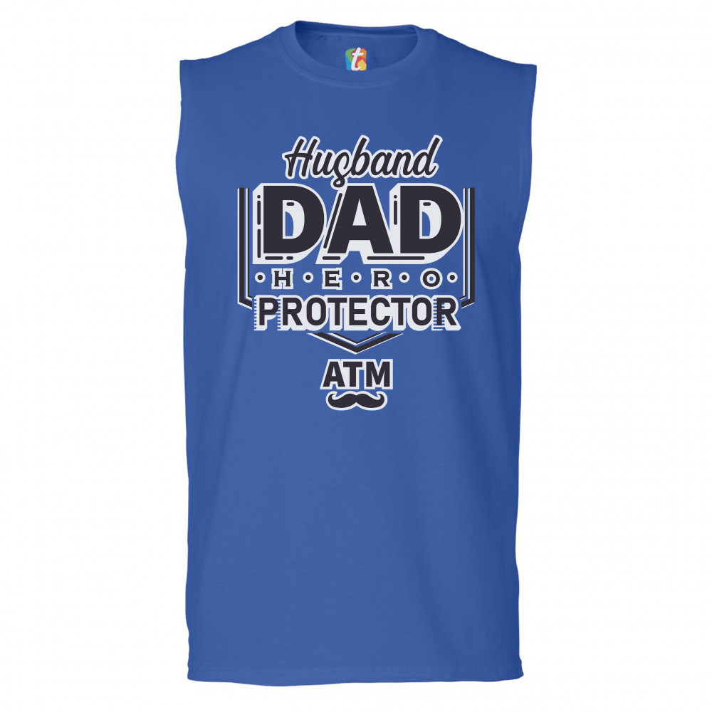 HUSBAND DAD PROTECTOR HERO ATM muscle shirt father's day papa daddy men's blue