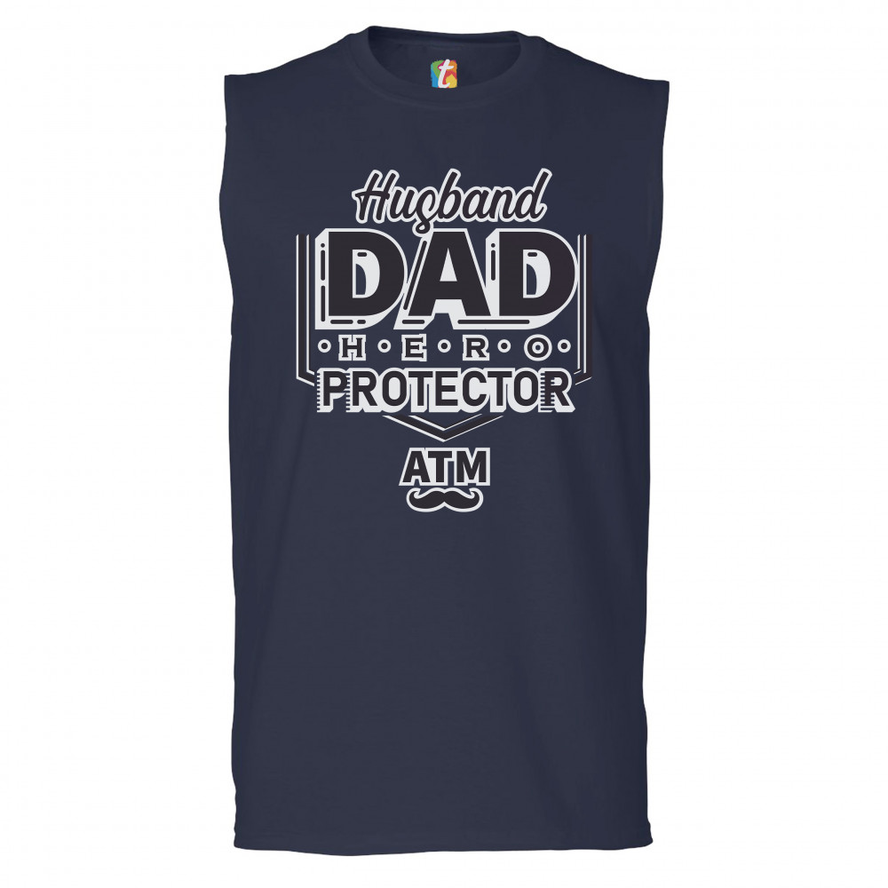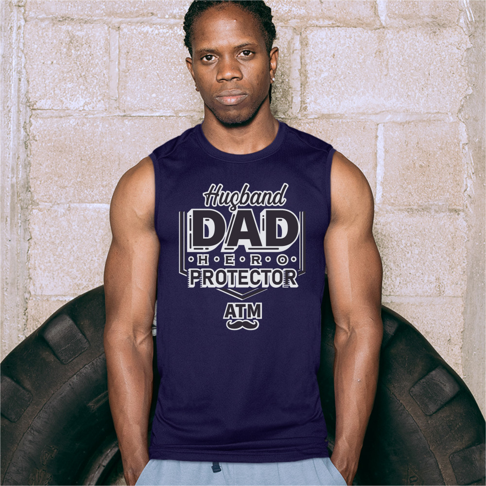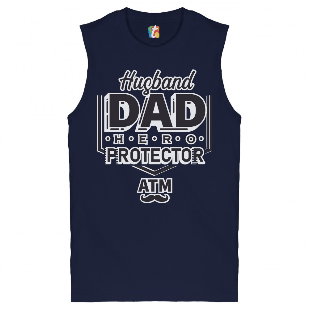 HUSBAND DAD PROTECTOR HERO ATM muscle shirt father's day papa daddy men's navy blue