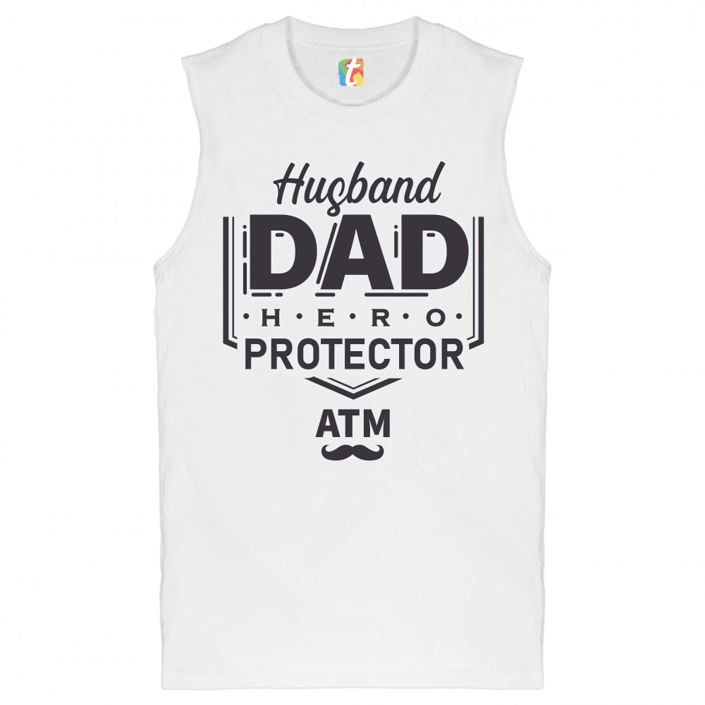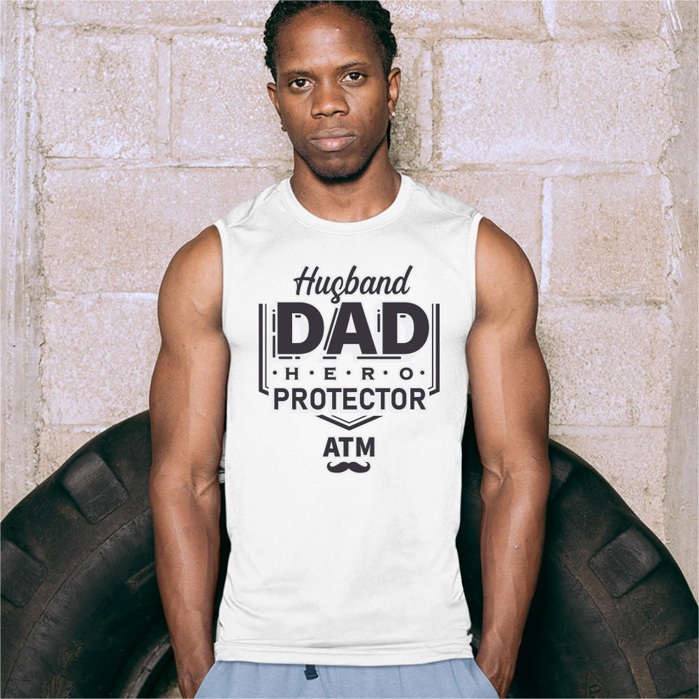 HUSBAND DAD PROTECTOR HERO ATM muscle shirt father's day papa daddy men's white