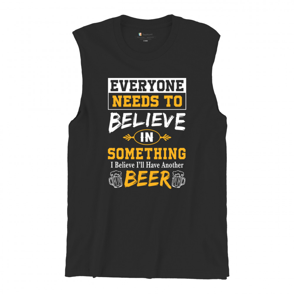 Celebrate your love for beer with the witty "Everyone Needs to Believe in Something, I Believe I'll Have Another Beer" design. Perfect for beer lovers and casual outings.