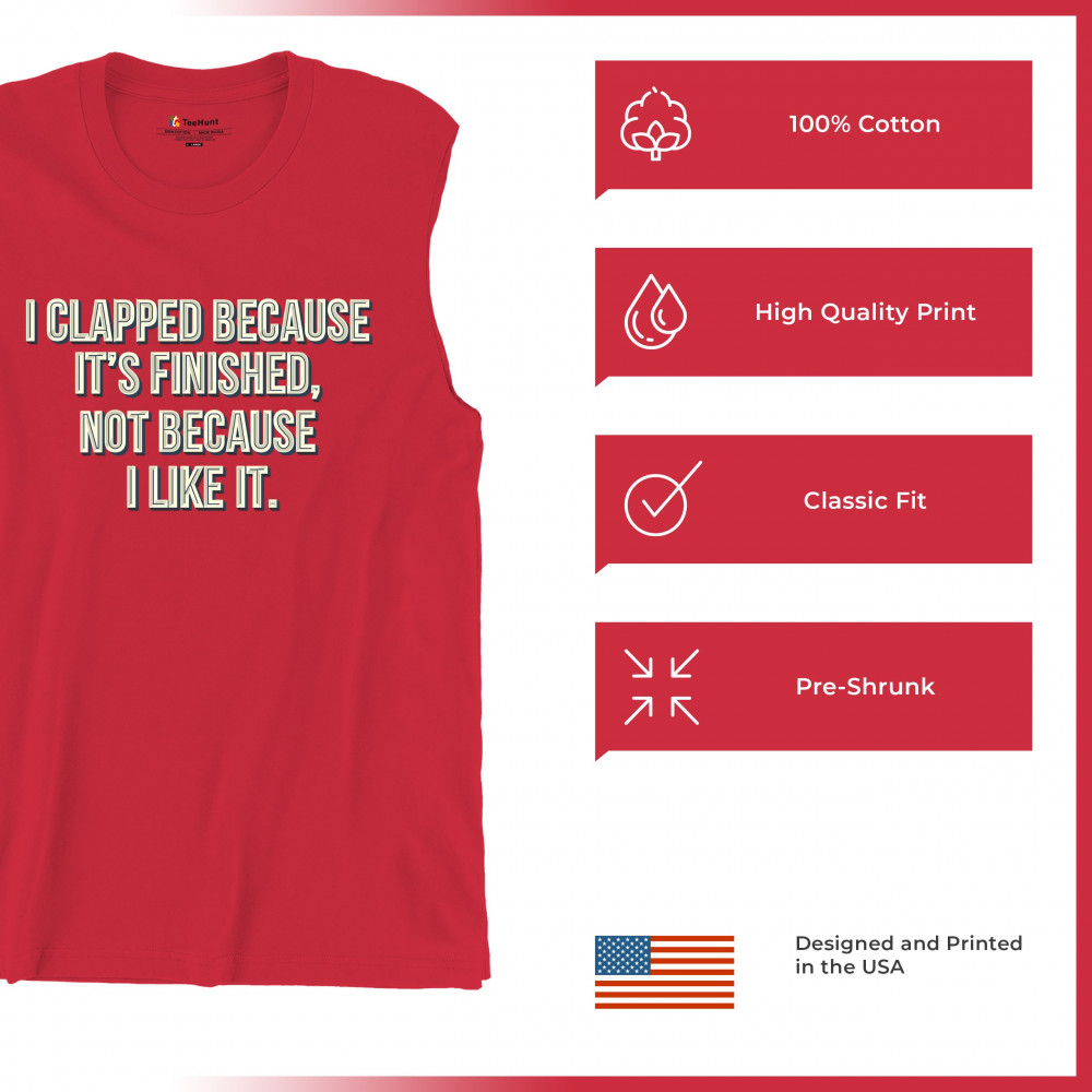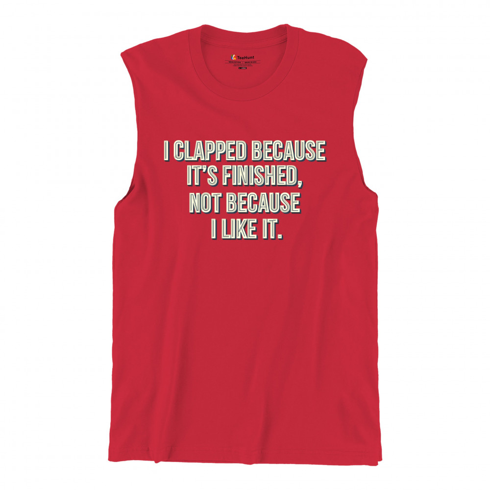 I CLAPPED BECAUSE IT'S FINISHED NOT BECAUSE I LIKE IT muscle shirt funny men's red