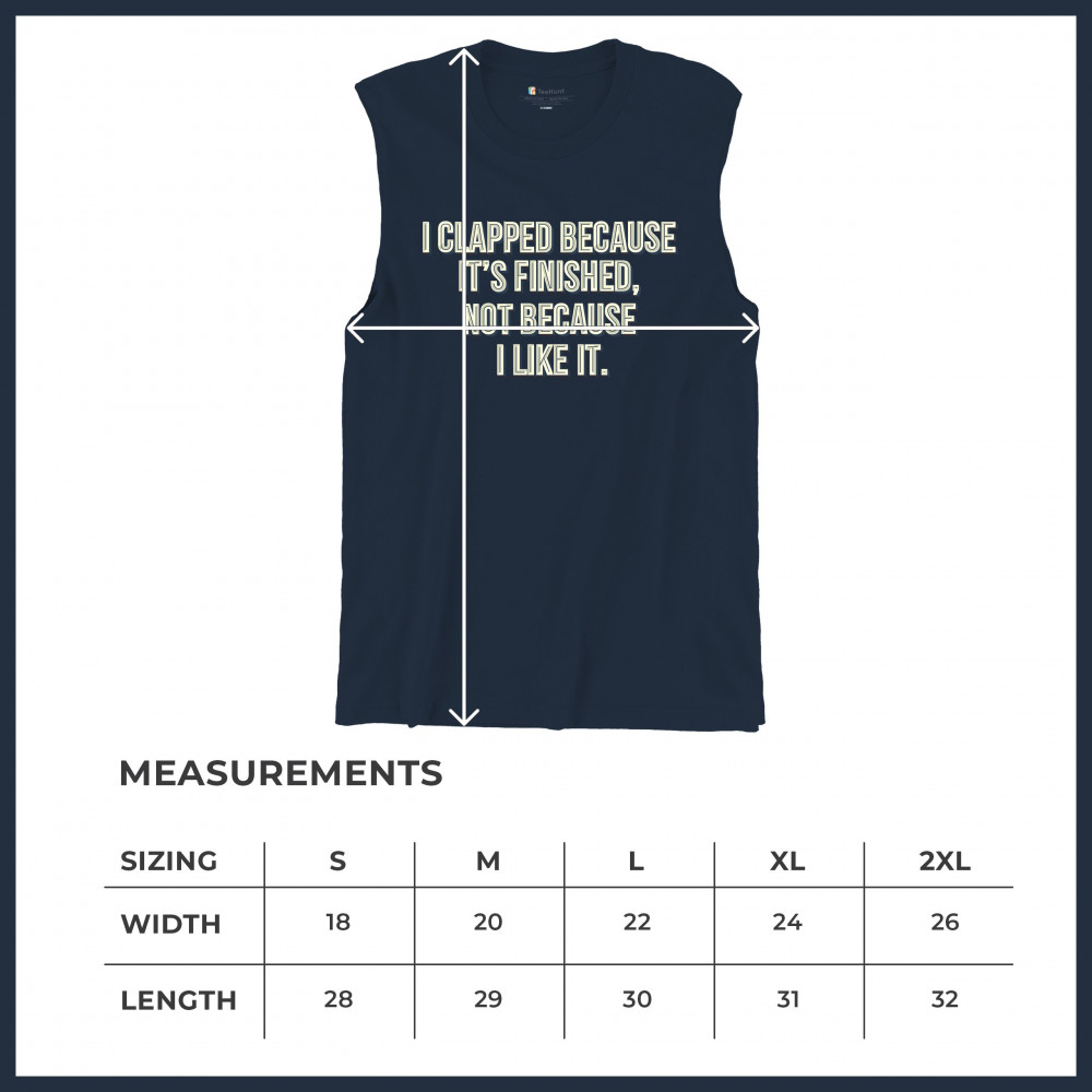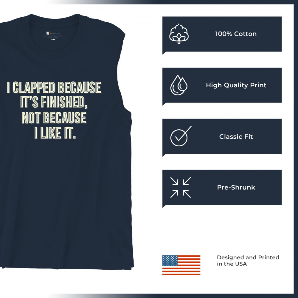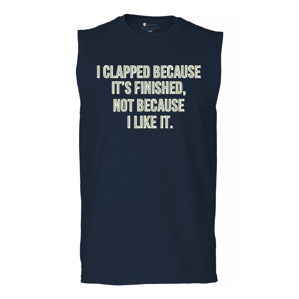 I CLAPPED BECAUSE IT'S FINISHED NOT BECAUSE I LIKE IT muscle shirt funny men's navy blue