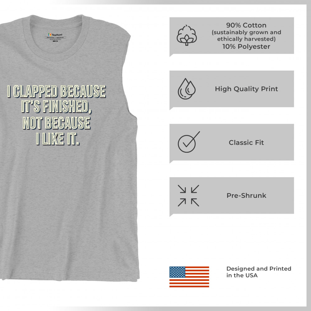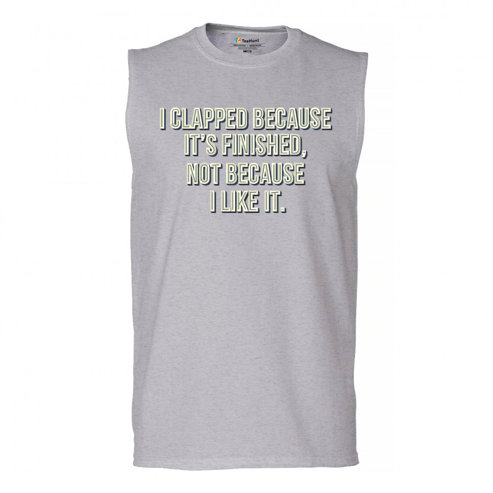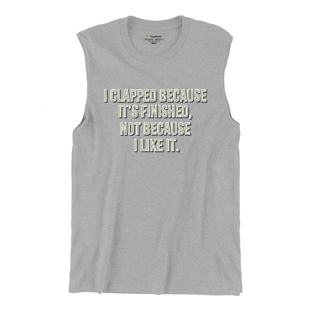 I CLAPPED BECAUSE IT'S FINISHED NOT BECAUSE I LIKE IT muscle shirt funny men's gray