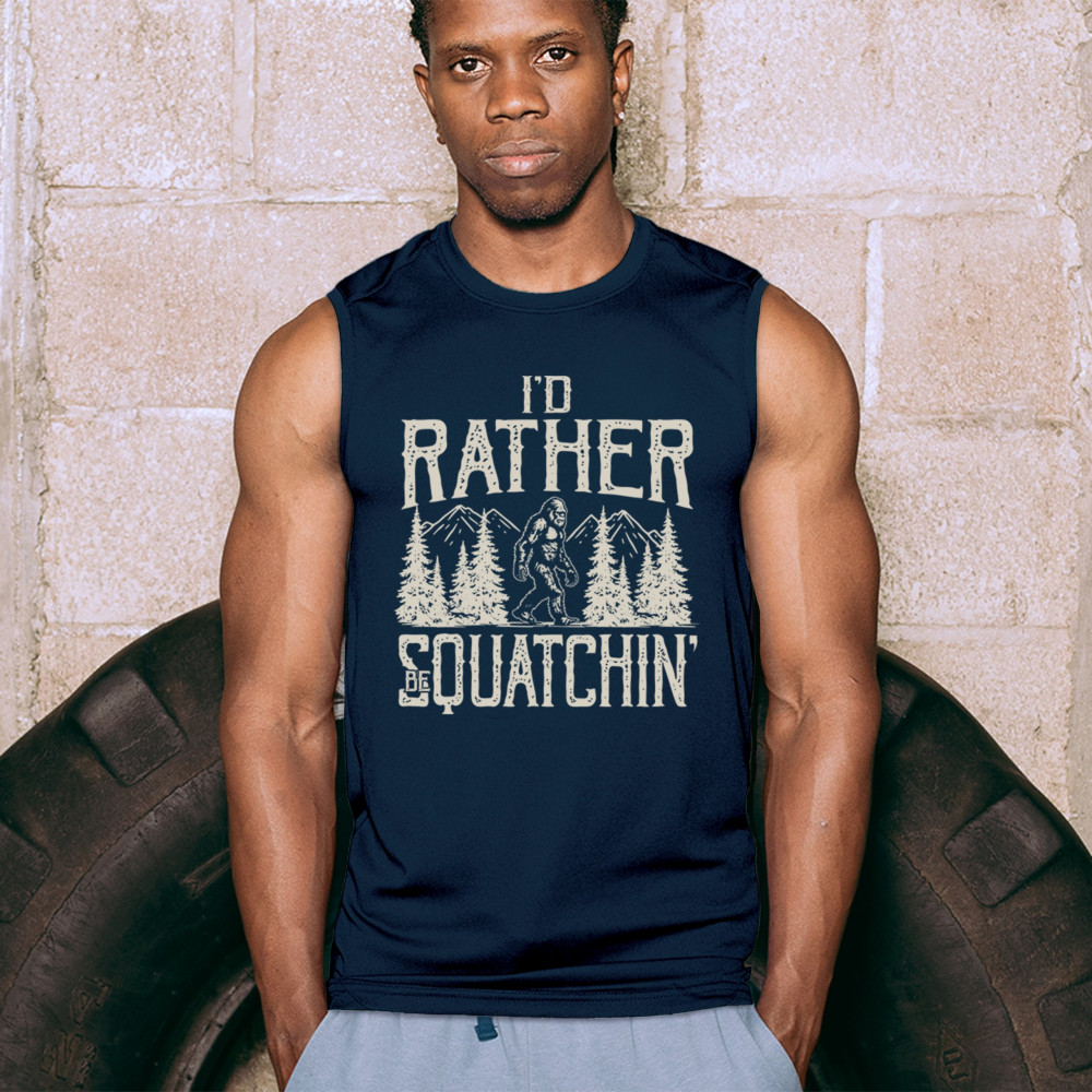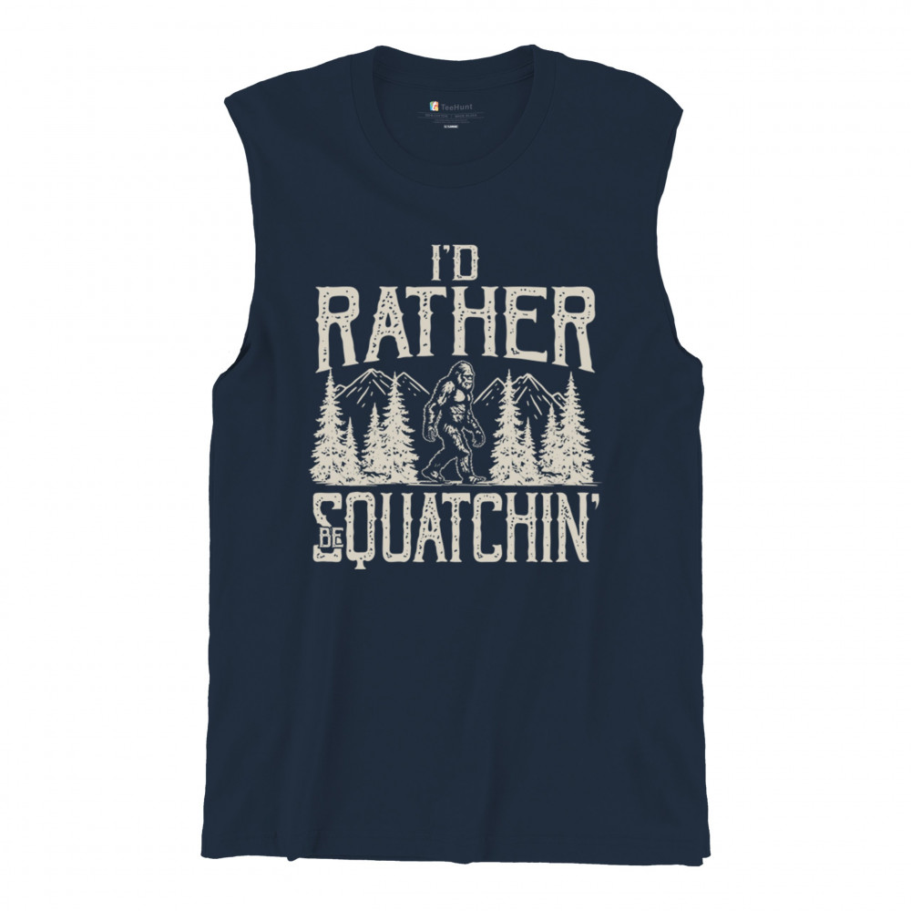 "I’d Rather Be Squatchin’" – A bold design for Bigfoot fans and outdoor adventurers, featuring Sasquatch in a wilderness setting. Perfect for hikers and cryptid enthusiasts!