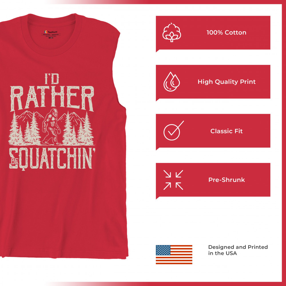 "I’d Rather Be Squatchin’" – A bold design for Bigfoot fans and outdoor adventurers, featuring Sasquatch in a wilderness setting. Perfect for hikers and cryptid enthusiasts!