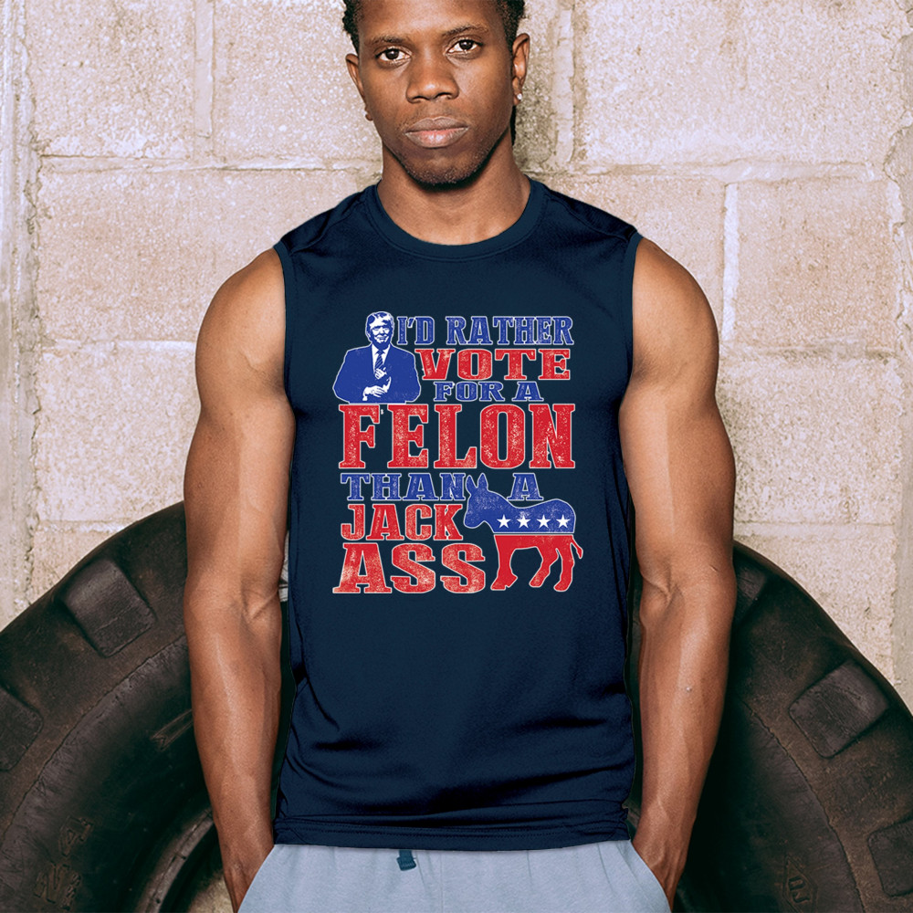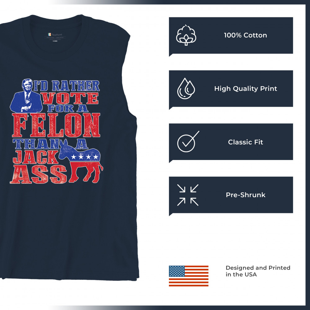 Boldly express your support with the "I'd Rather Vote For A Felon Than A Jackass" design. Perfect for rallies, it showcases loyalty to Trump and JD Vance.