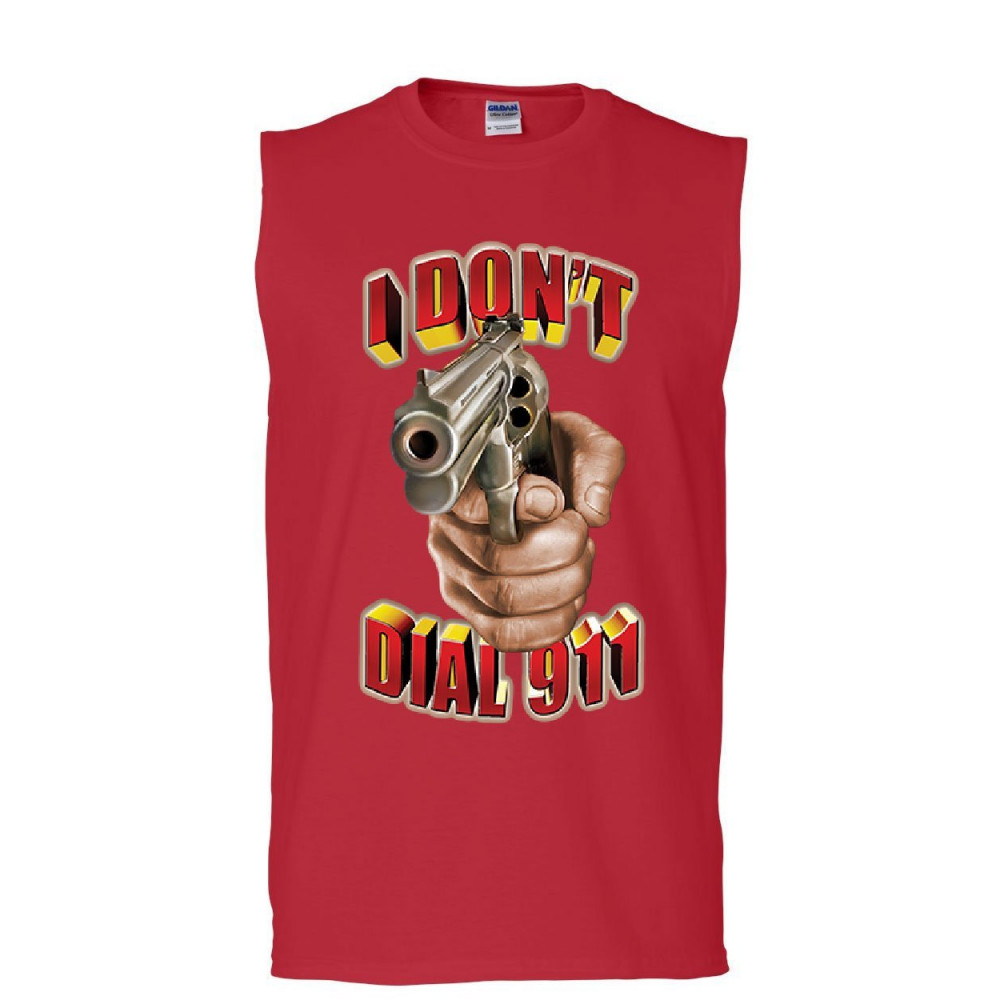 I DON'T DIAL 911 muscle shirt defend 2nd amendment pro guns revolver sleeveless red