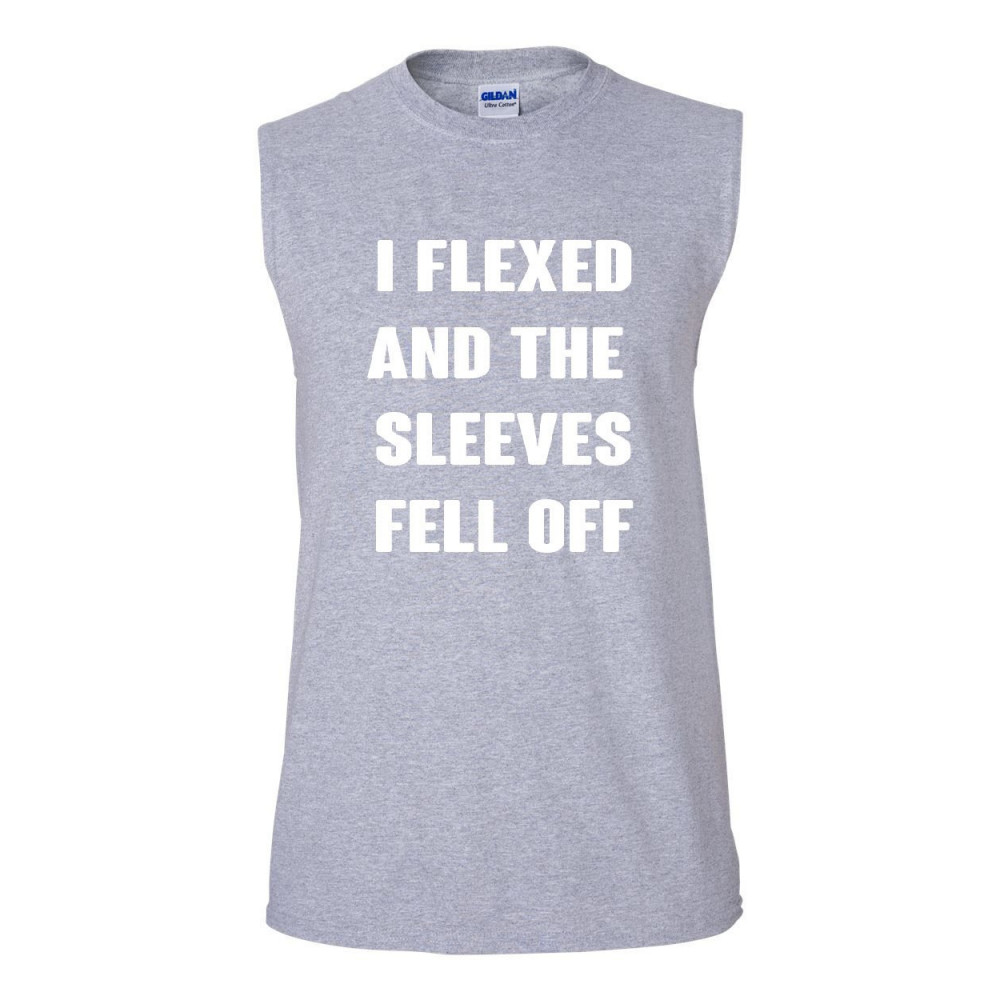 I FLEXED AND THE SLEEVES FELL OFF muscle shirt funny gym workout gray