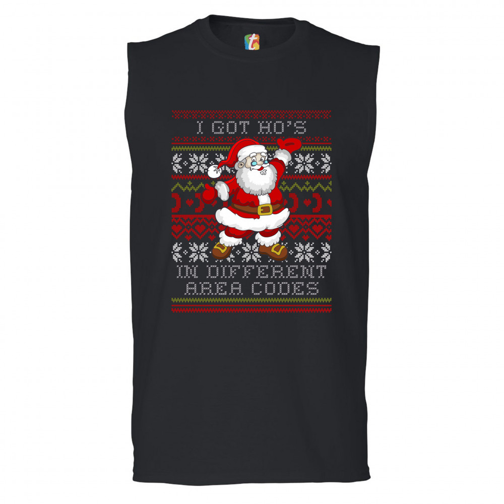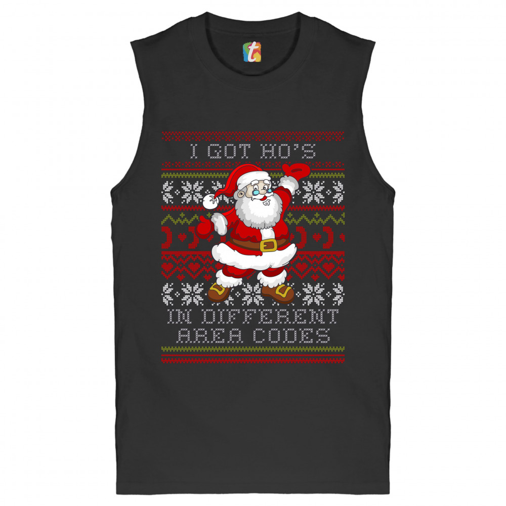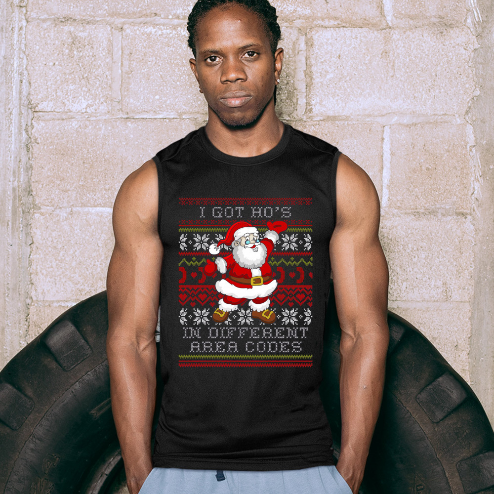 I GOT HO'S IN DIFFERENT AREA CODES muscle shirt santa claus ugly sweater men's black