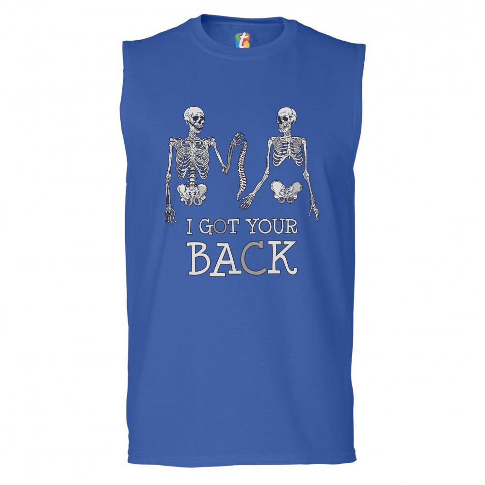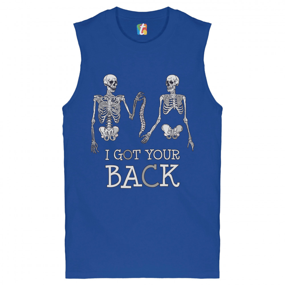 I GOT YOUR BACK muscle shirt happy halloween spooky skeletons men's royal blue