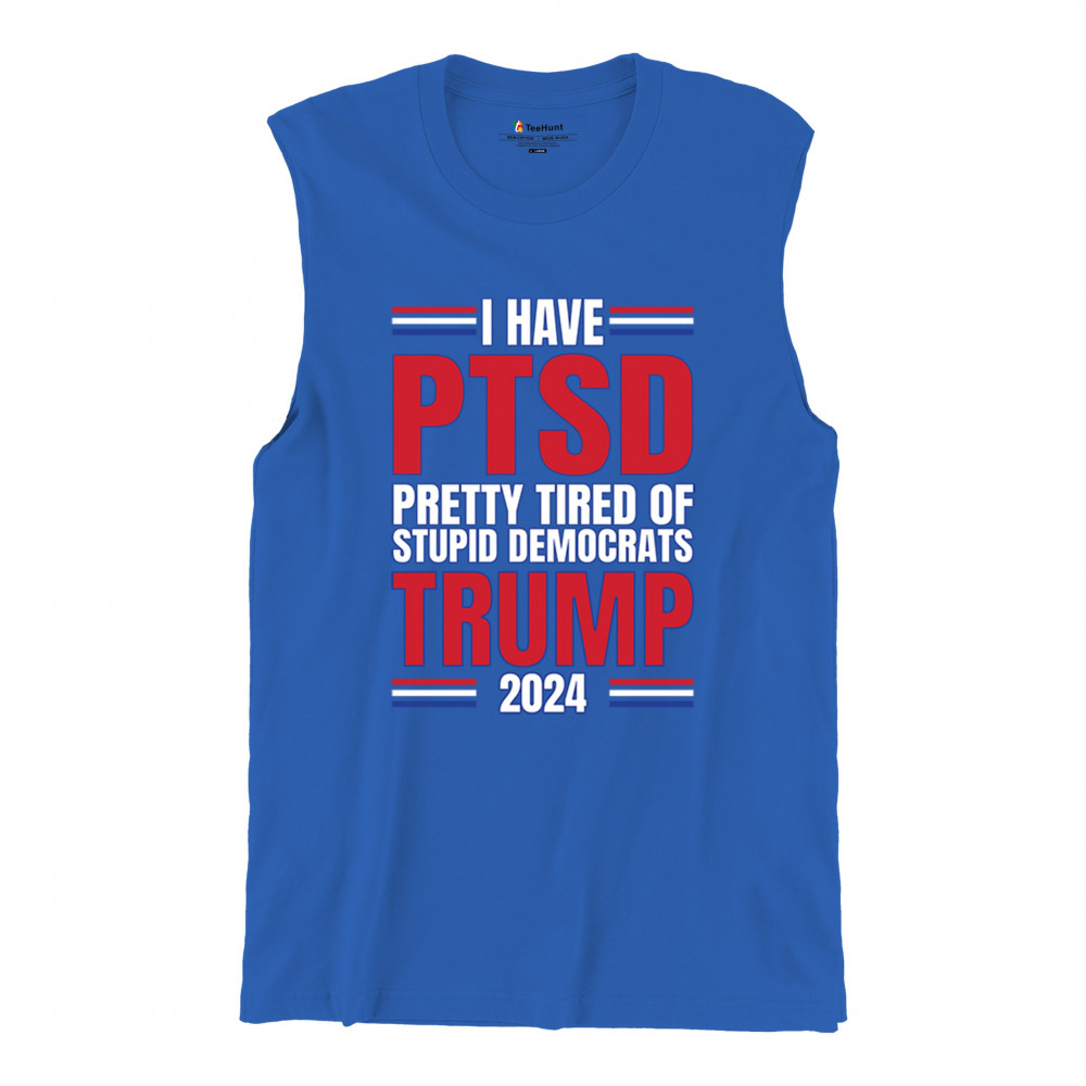 Stand up against the political chaos with "I have PTSD Pretty Tired of Democrats, Trump 2024" tee. As a dedicated supporter of conservative values, join the Trump Train to victory. Trust in God, not government, and reject the traitors to our nation. Let the American flag symbolize our resilience as we fight for President Trump and the future of America.