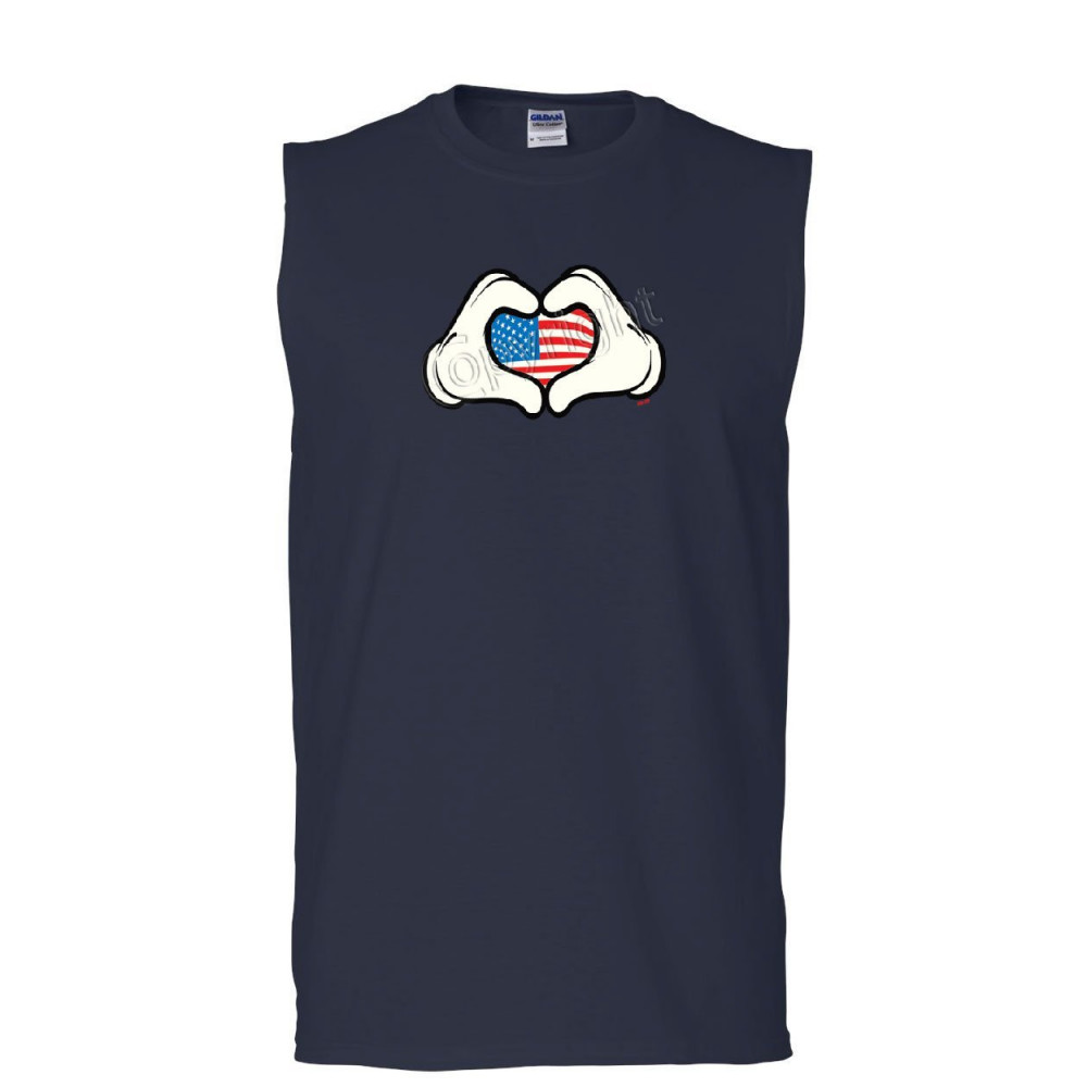 I HEART USA CARTOON HANDS muscle shirt 4th of july cute american flag sleeveless navy blue