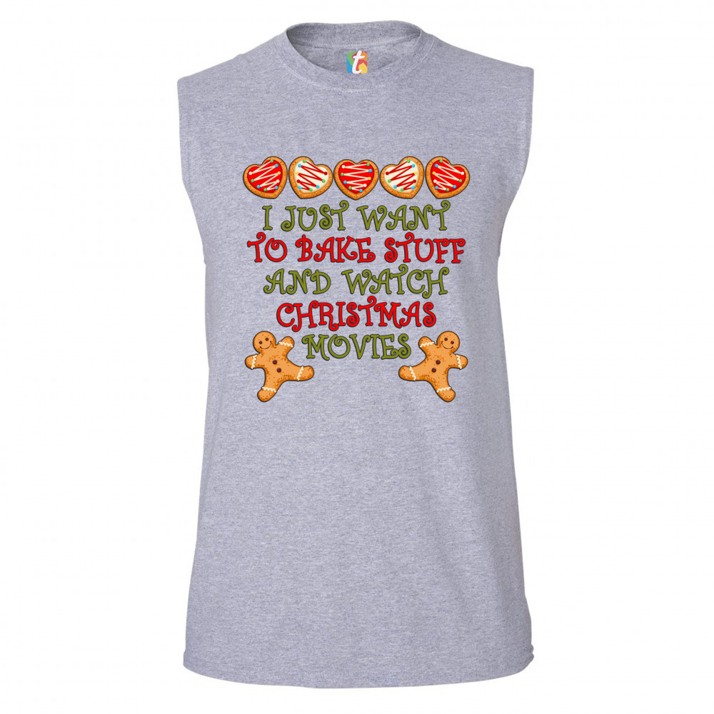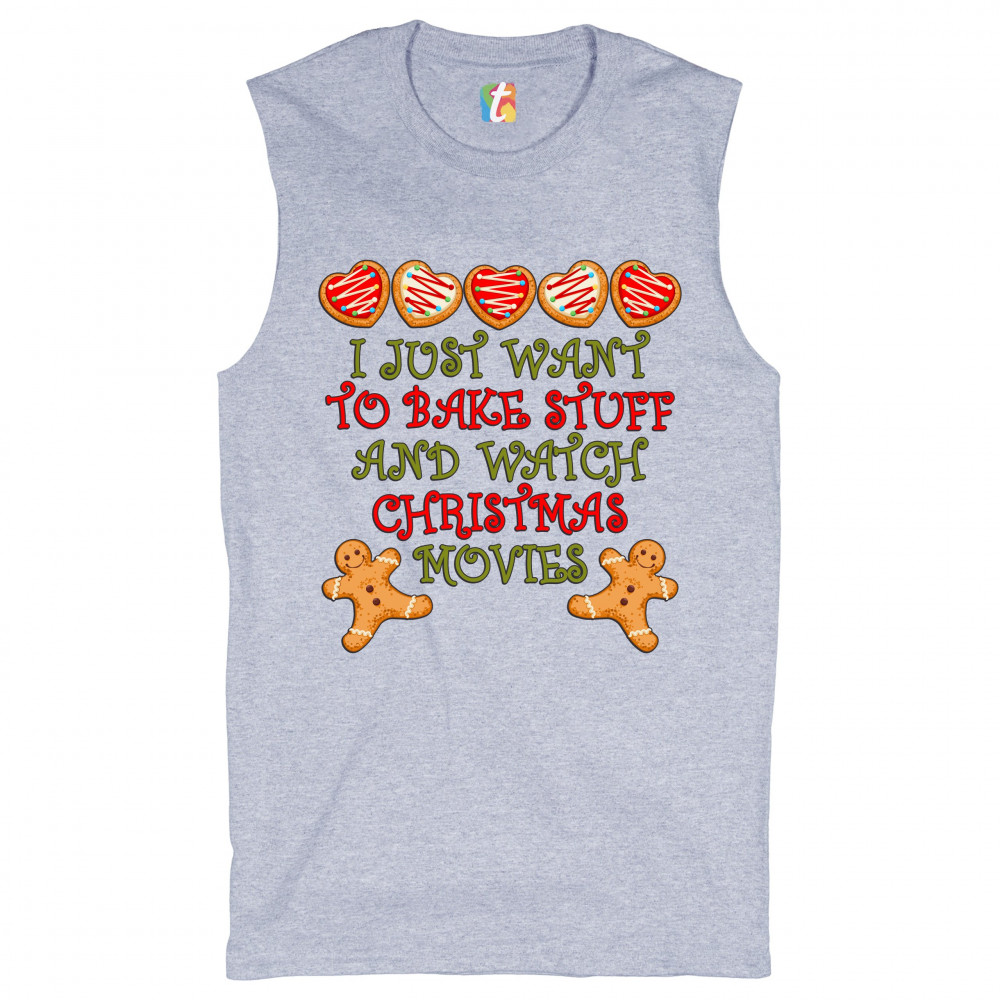 I JUST WANT TO BAKE STUFF AND WATCH CHRISTMAS MOVIES muscle shirt xmas men's gray