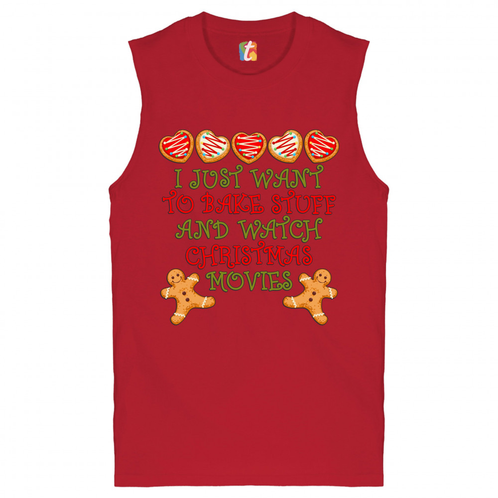 A print saying: "I just want to bake stuff and watch Christmas Movies". The print features two gingerbread men in the bottom and five heart-shaped cookies in the top. Amazing choice to make people smile and spread positive vibes on Christmas Eve.