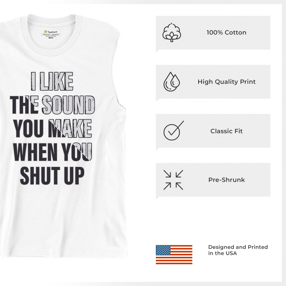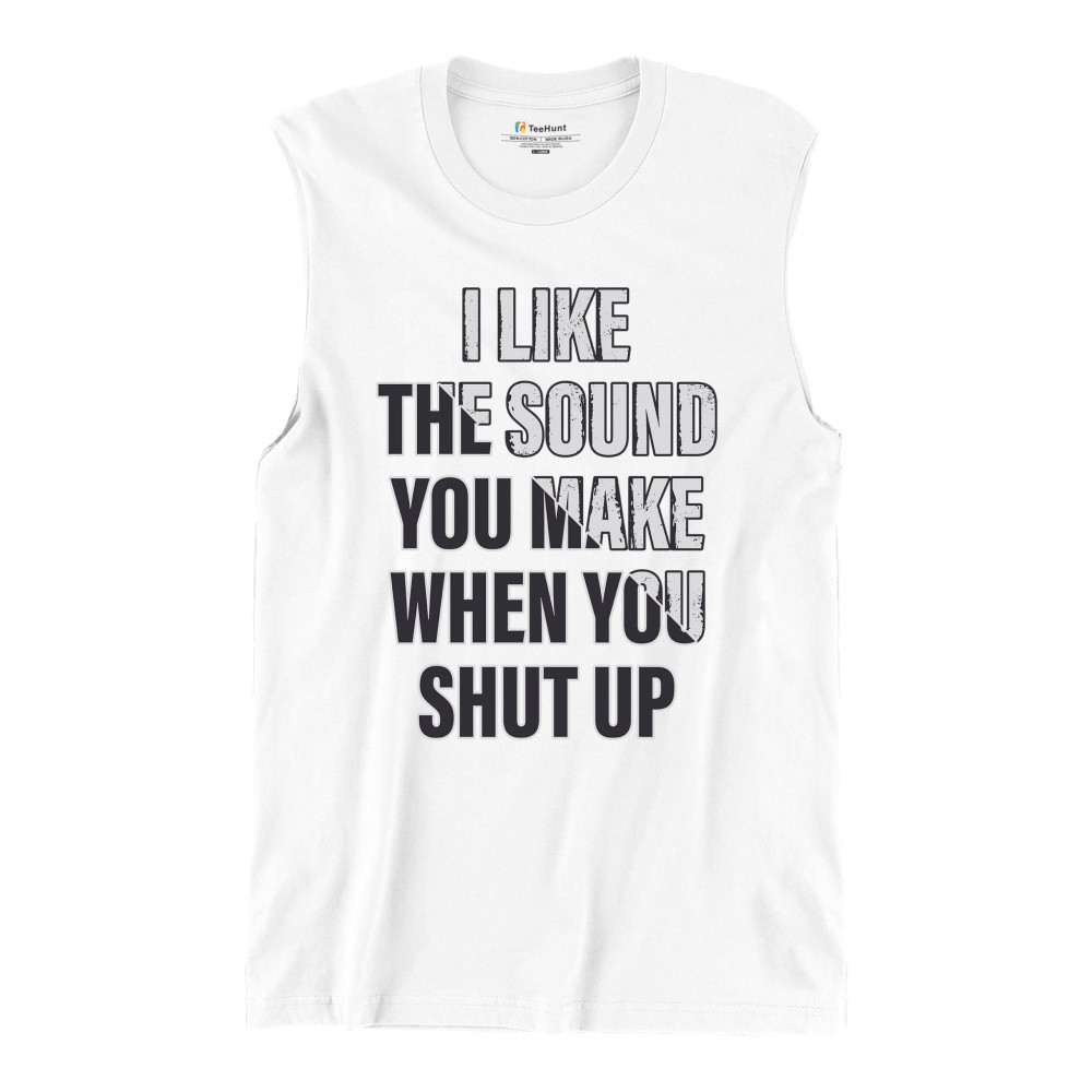 I LIKE THE SOUND YOU MAKE WHEN YOU SHUT UP muscle shirt sarcastic men's white