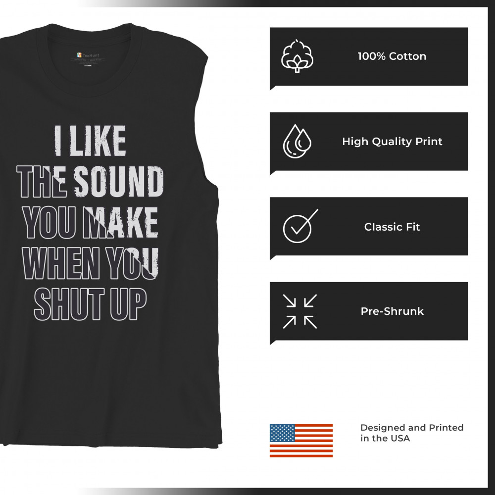 I LIKE THE SOUND YOU MAKE WHEN YOU SHUT UP muscle shirt sarcastic men's black