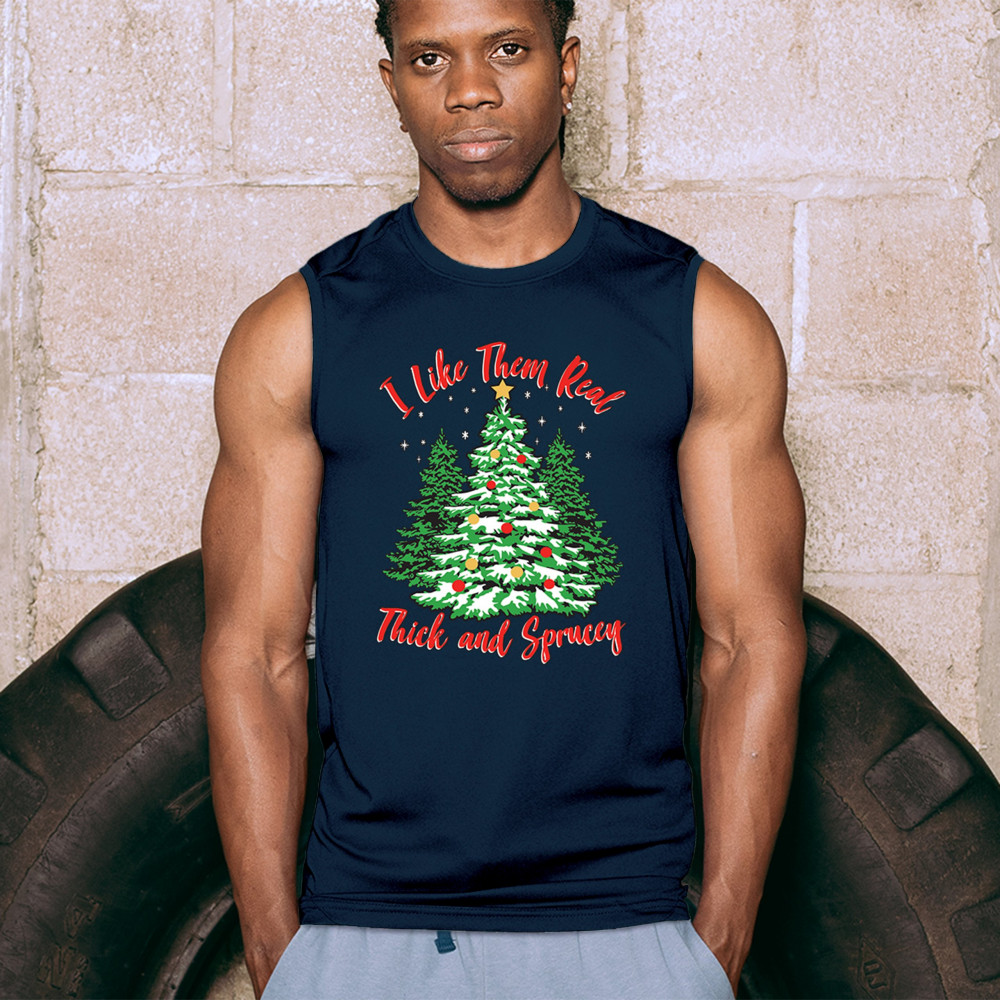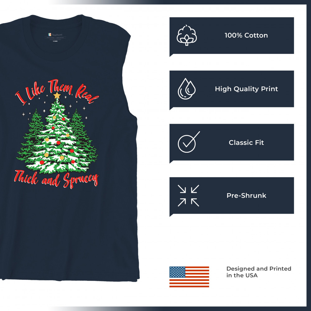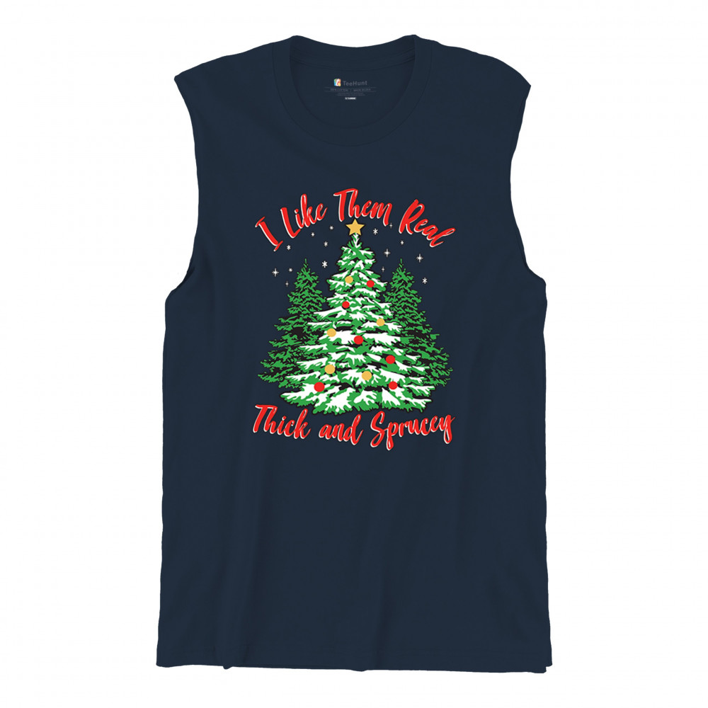 Enjoy the holiday season with our "I Like Them Real, Thick, and Sprucey" Christmas tree design, perfect for festive gatherings and holiday gifting!