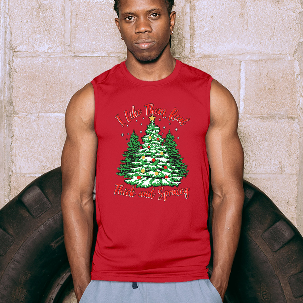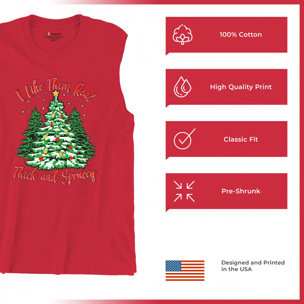Enjoy the holiday season with our "I Like Them Real, Thick, and Sprucey" Christmas tree design, perfect for festive gatherings and holiday gifting!