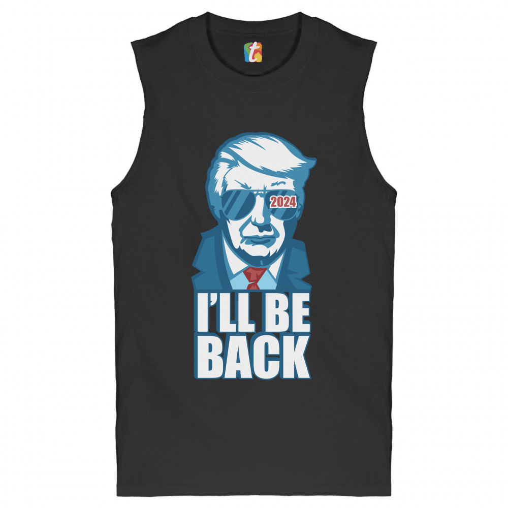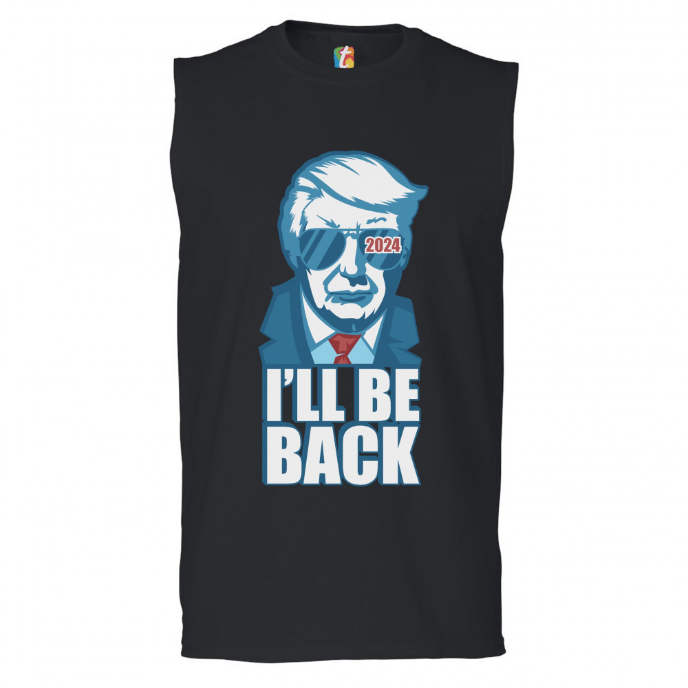 I'LL BE BACK DONALD TRUMP 2024 muscle shirt take america back two terms men's black