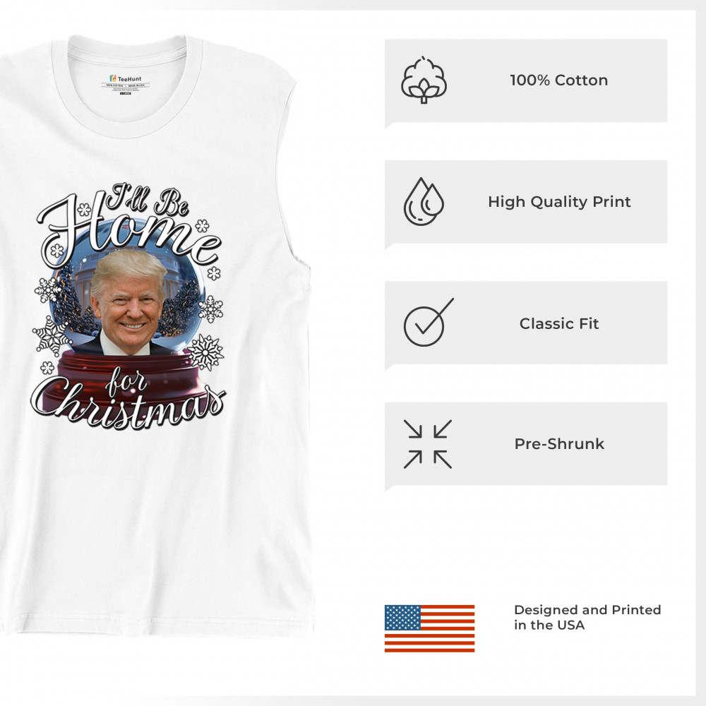 Get ready for the ultimate blend of holiday cheer and American pride with this "I'll Be Home for Christmas" design featuring Donald J. Trump in a festive snow globe. Perfect for gifts, holiday parties, or cozy mornings, this standout piece celebrates the season with style. Whether paired with matching pajamas or a cozy sweatshirt, it's a perfect way to add patriotic charm to your Feliz Navidad celebrations or office gatherings.