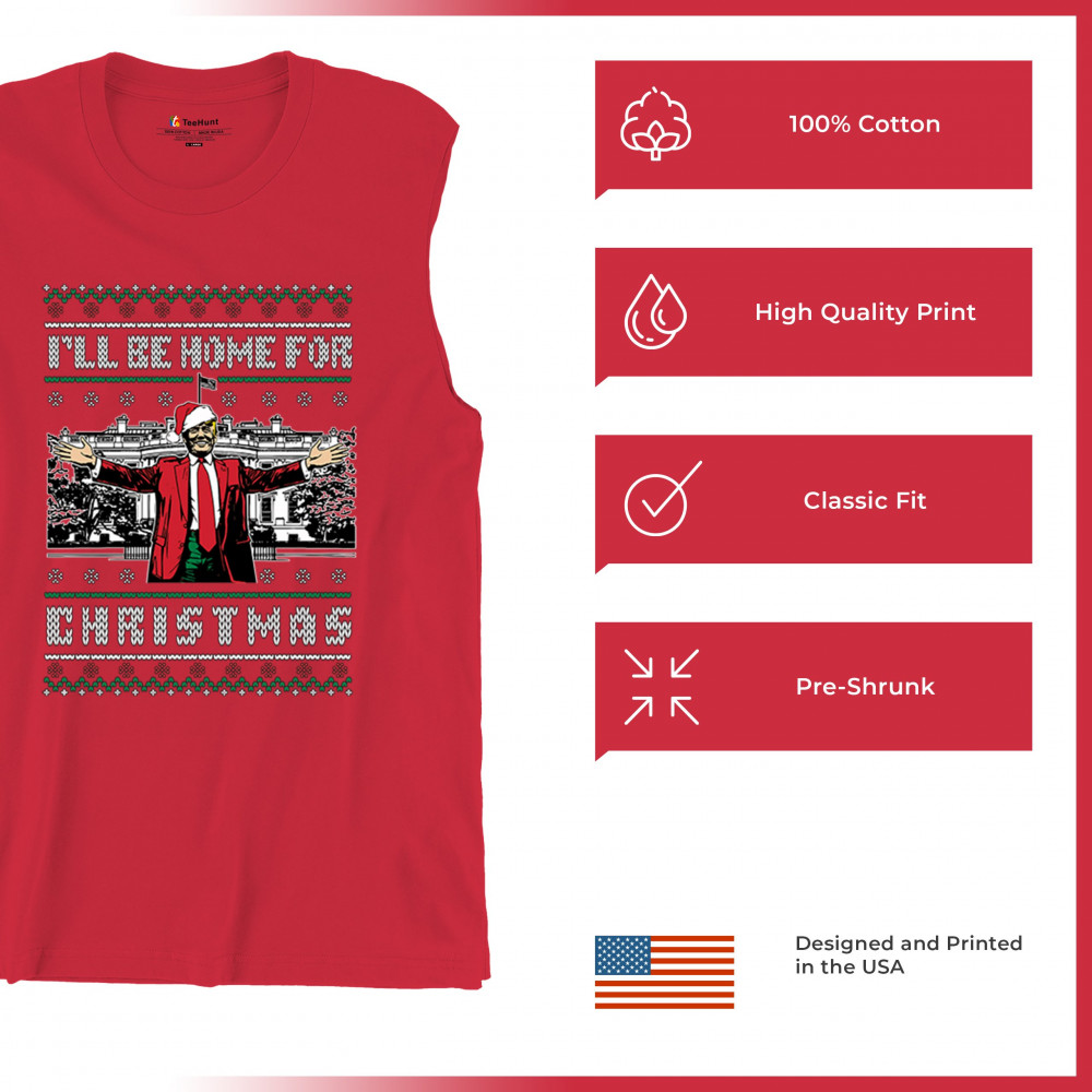 Get into the Christmas spirit with the "I'll Be Home for Christmas" design featuring Donald J. Trump in a festive holiday setting. Perfect for ugly sweater contests, holiday gatherings, and unique gifts for supporters, this humorous design adds a bold, patriotic touch to your seasonal celebrations. Whether for cozy mornings or office parties, it's a must-have for holiday cheer.