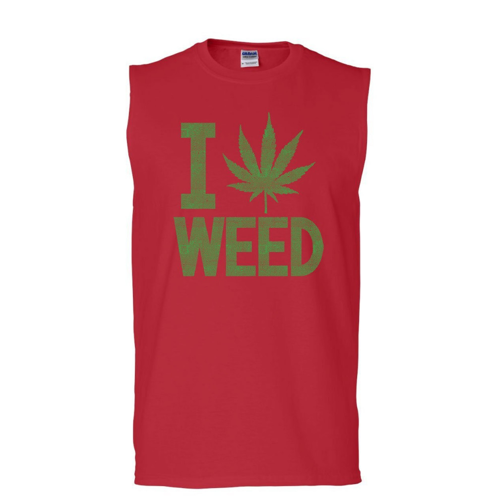 I LOVE WEED muscle shirt smoking 420 pot reggae rasta marijuana kush sleeveless red