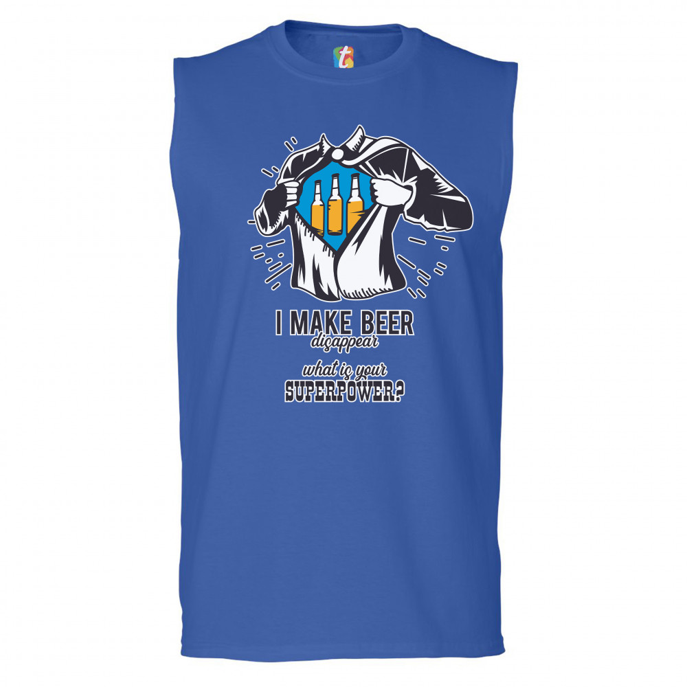 A funny print featuring a torso of man, who is ripping his shirt, exposing a picture of three bottles of beer. Underneath the picture the print says: "I make beer disappear. What is your superpower?". Great choice as a gift for Father's Day celebration.