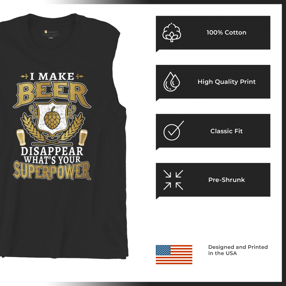 I MAKE BEER DISAPPEAR muscle shirt funny drinking humor craft brew ipa men's black