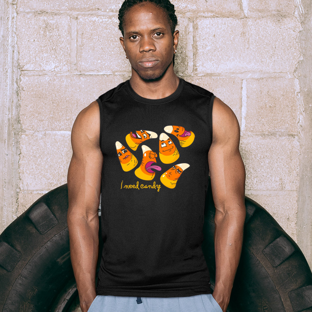 I NEED CANDY muscle shirt happy halloween trick-or-treating funny men's black