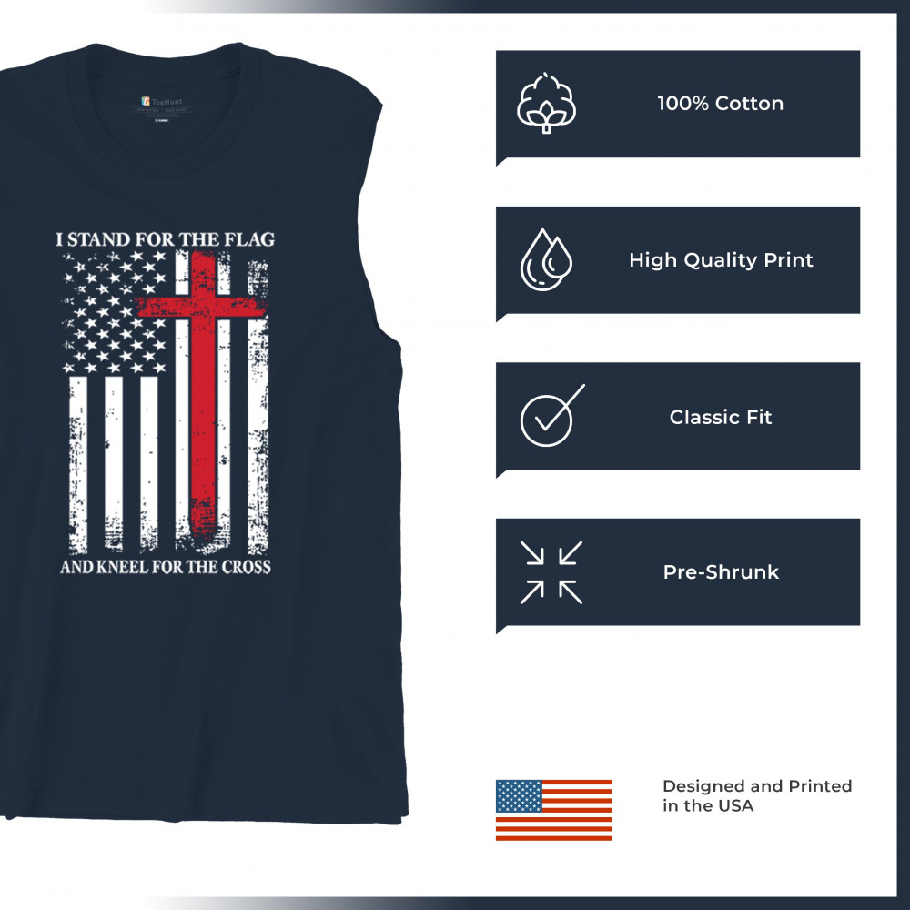 Celebrate faith and country with our Stand for the Flag Kneel for the Cross design. Featuring iconic symbols like the American flag and the Punisher emblem, this shirt is a testament to Christian principles and patriotism. A must-have for those seeking Trump merchandise and expressing unwavering support for the military.