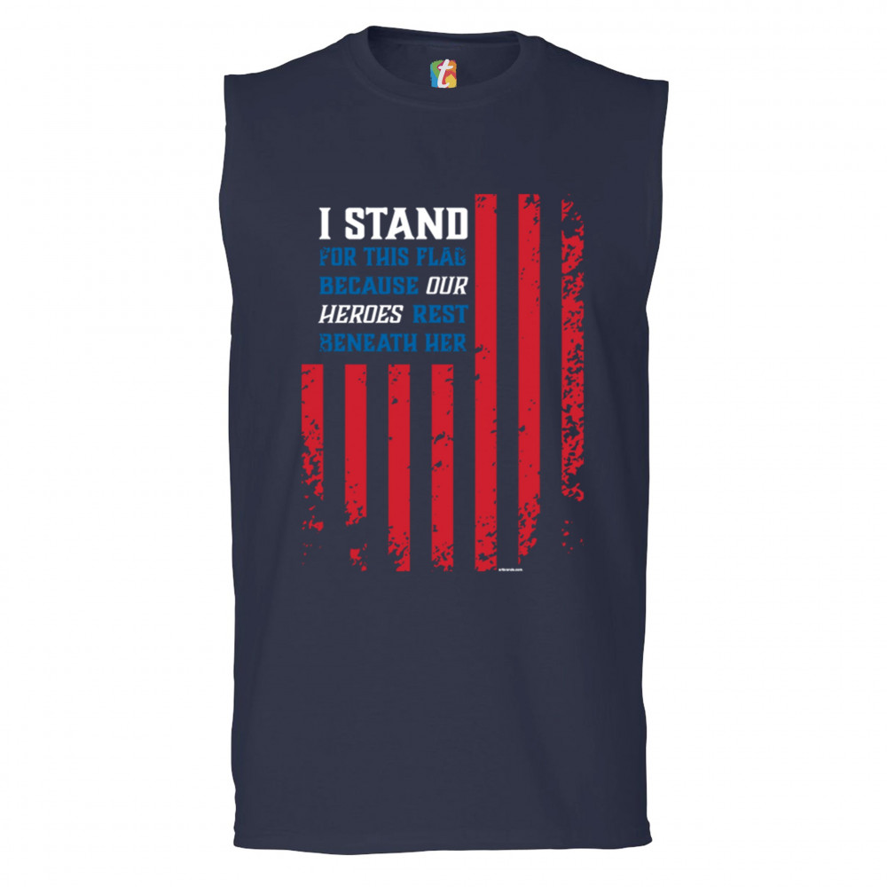 I STAND FOR THIS FLAG muscle shirt patriotic veteran's day american flag men's navy blue
