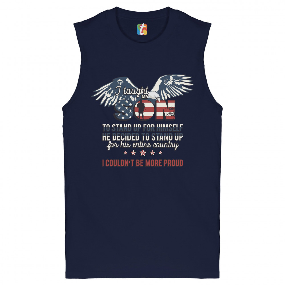 I TAUGHT MY SON TO STAND UP FOR HIMSELF muscle shirt military patriotic men's navy blue