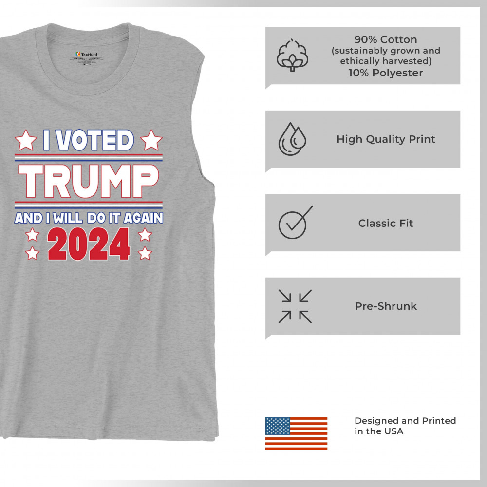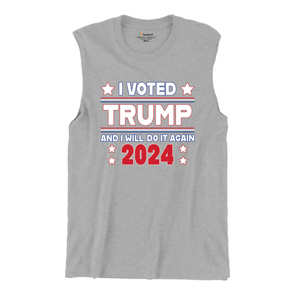 Stand tall as a dedicated Trump supporter with our "I Voted Trump and Will Do It Again 2024" design, showcasing your unwavering commitment to the America First agenda. Let the world know that you stand ready to cast your vote for President Trump once more