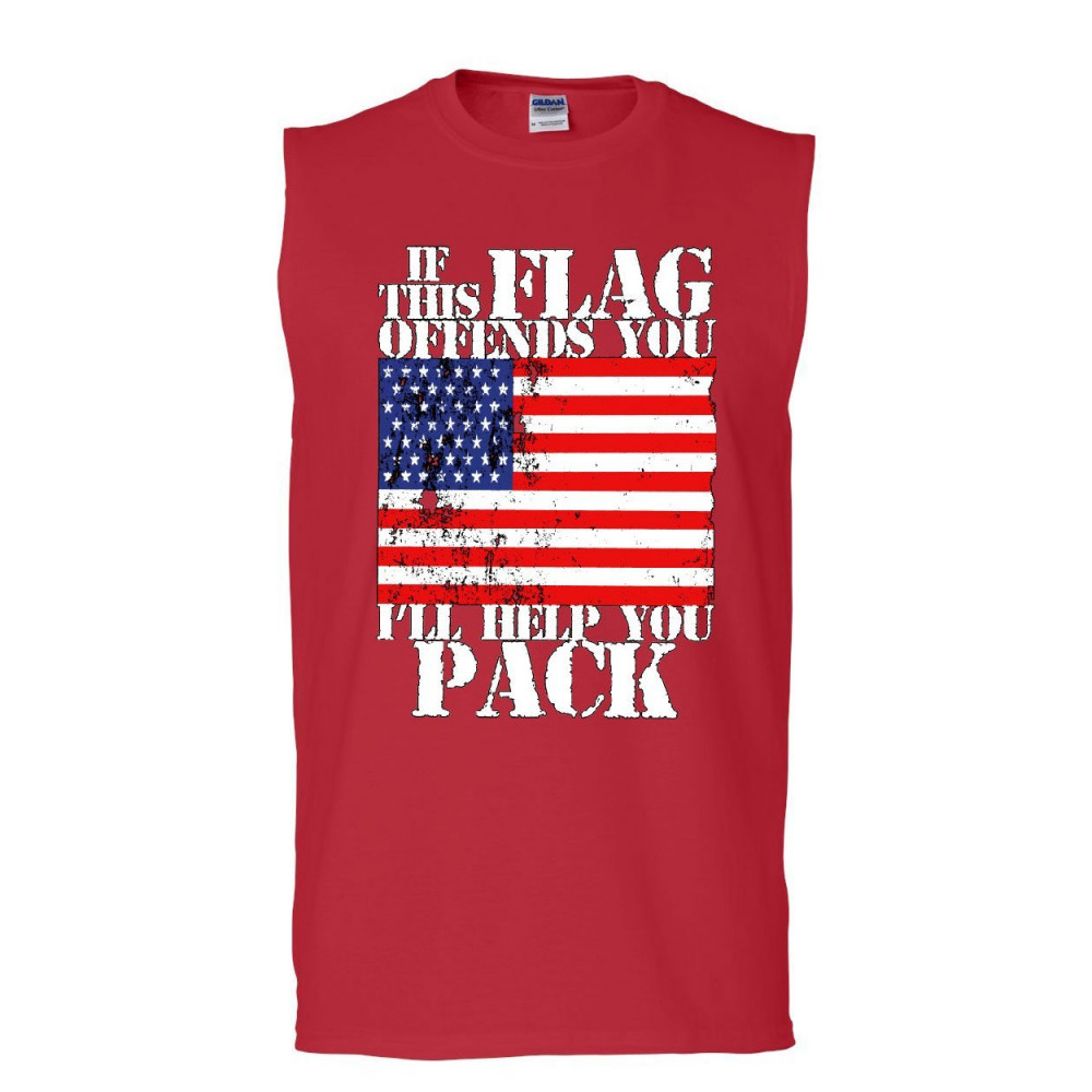 IF THIS FLAG OFFENDS YOU I'LL HELP YOU PACK muscle shirt patriotic sleeveless red