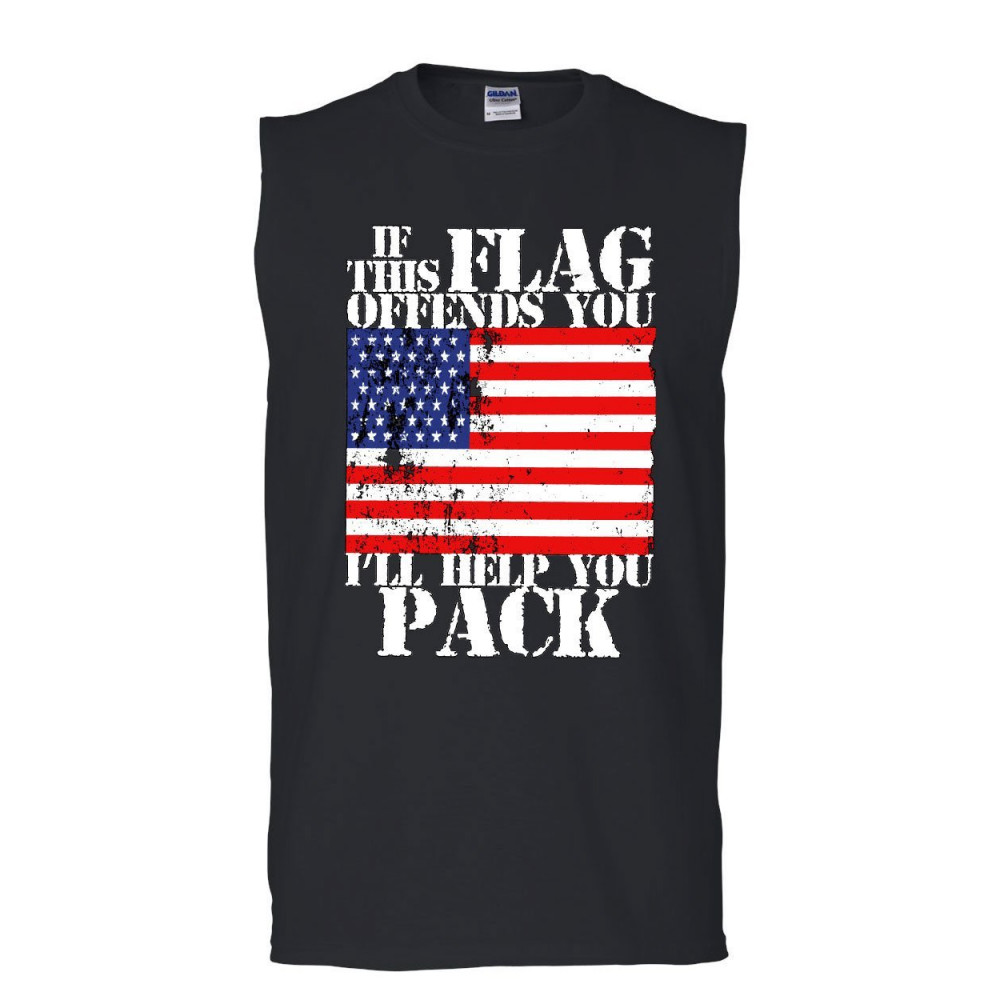 IF THIS FLAG OFFENDS YOU I'LL HELP YOU PACK muscle shirt patriotic sleeveless black