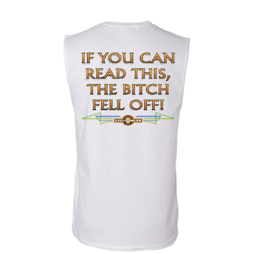 IF YOU CAN READ THIS, THE BITCH FELL OFF muscle shirt funny biker white