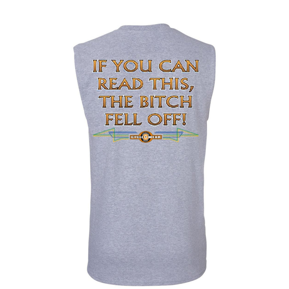 IF YOU CAN READ THIS, THE BITCH FELL OFF muscle shirt funny biker gray