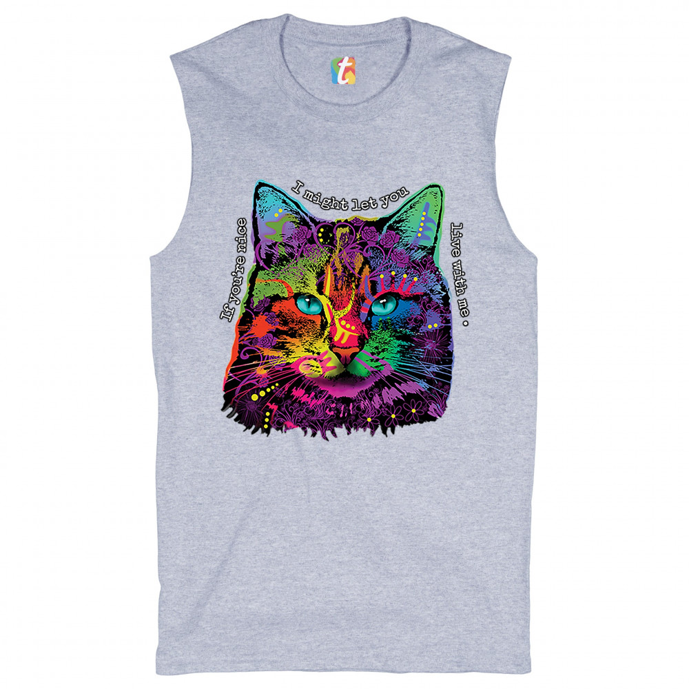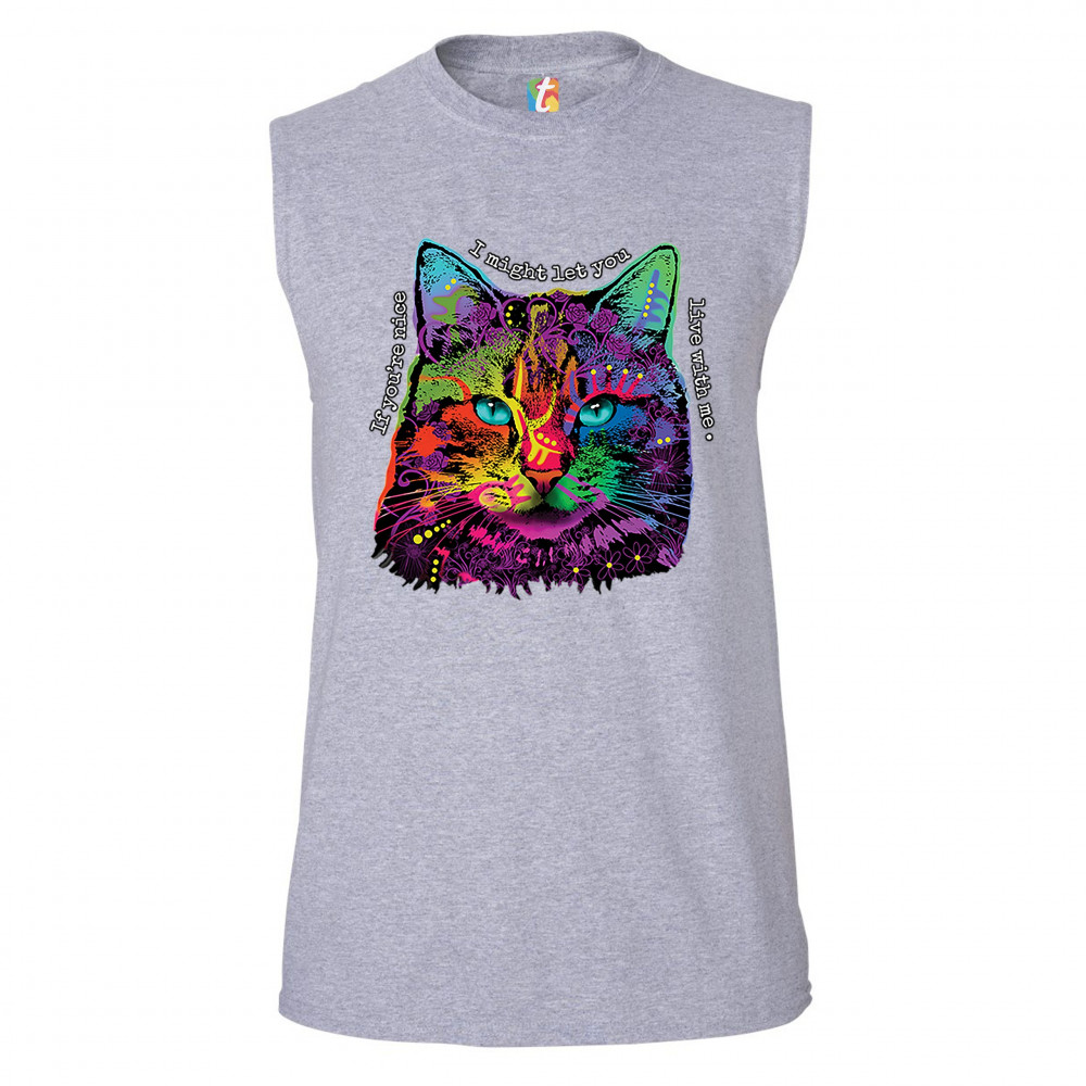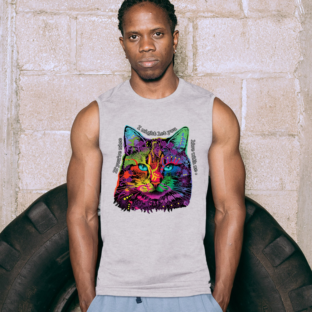 IF YOU'RE NICE I MIGHT LET YOU LIVE WITH ME muscle shirt andy maxx cat men's gray